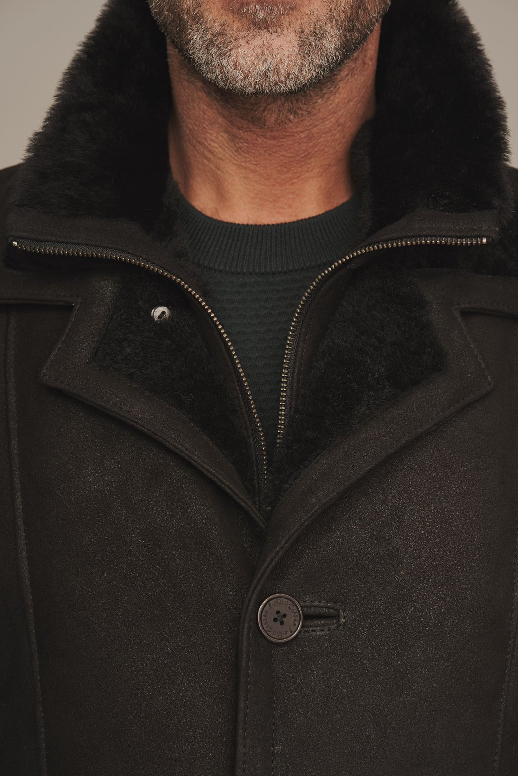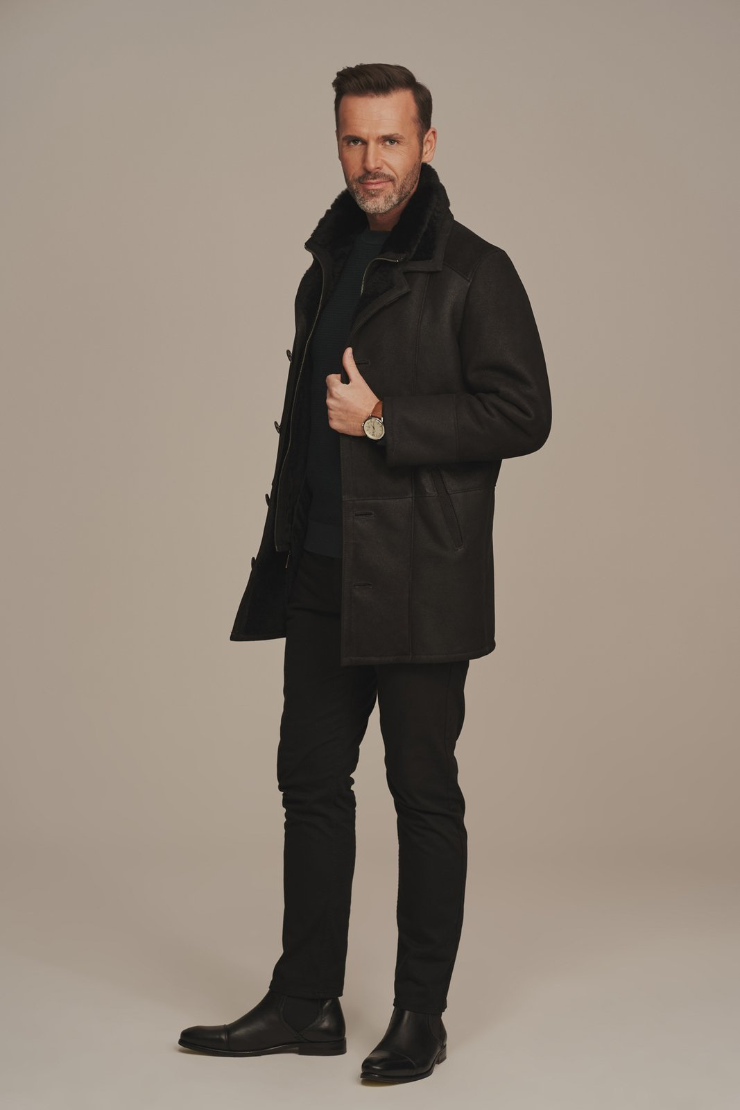 Tikras natūralus vyriškas avikailio paltas iki klubų – klasikinė juoda spalva ir išskirtinis komfortas. Tikras natūralus vyriškas avikailio paltas, kuris yra ne tik stilingas, bet ir itin praktiškas. Šis klasikinės juodos spalvos kožuchas puikiai tinka dėvėti ant švarko ar kostiumo – idealus pasirinkimas vyrams, vertinantiems eleganciją ir funkcionalumą žiemą. Pagamintas iš aukštos kokybės natūralių jagniuko odų, šis avikailio paltas yra nepaprastai šiltas, tačiau lengvas – suteikia komfortą net ir pačiomis šalčiausiomis dienomis. Paltas užsegamas patikimais mygtukais, o viduje esanti išimamąją detalė su aukšta apykakle (tarsi golfu) leidžia apsaugoti kaklą nuo vėjo ir šalčio, todėl šalikas tampa nereikalingas. Rankų darbo avikailio paltas pasižymi klasikinio kirpimo elegancija ir praktiškumu – tai rūbas, kuris ne tik papildys Jūsų žiemos garderobą, bet ir taps tikru stiliaus akcentu.