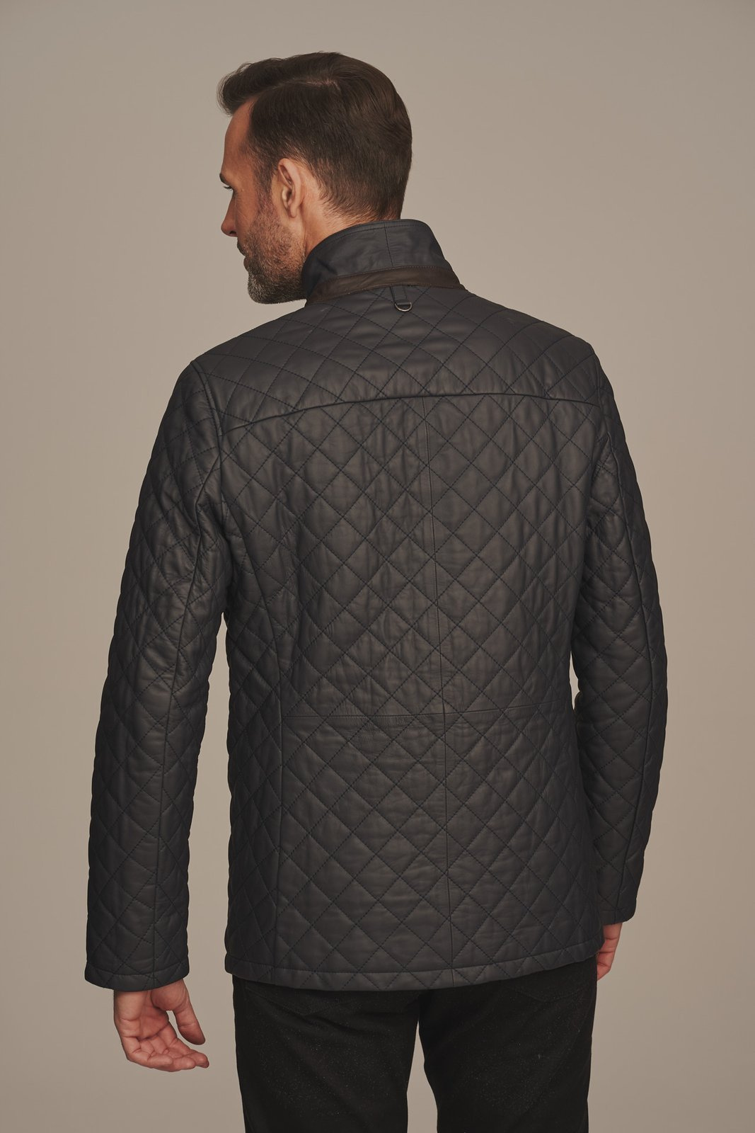 Vyriška dygsniuota odinė striukė iš natūralios avių odos – tamsiai mėlyna spalva