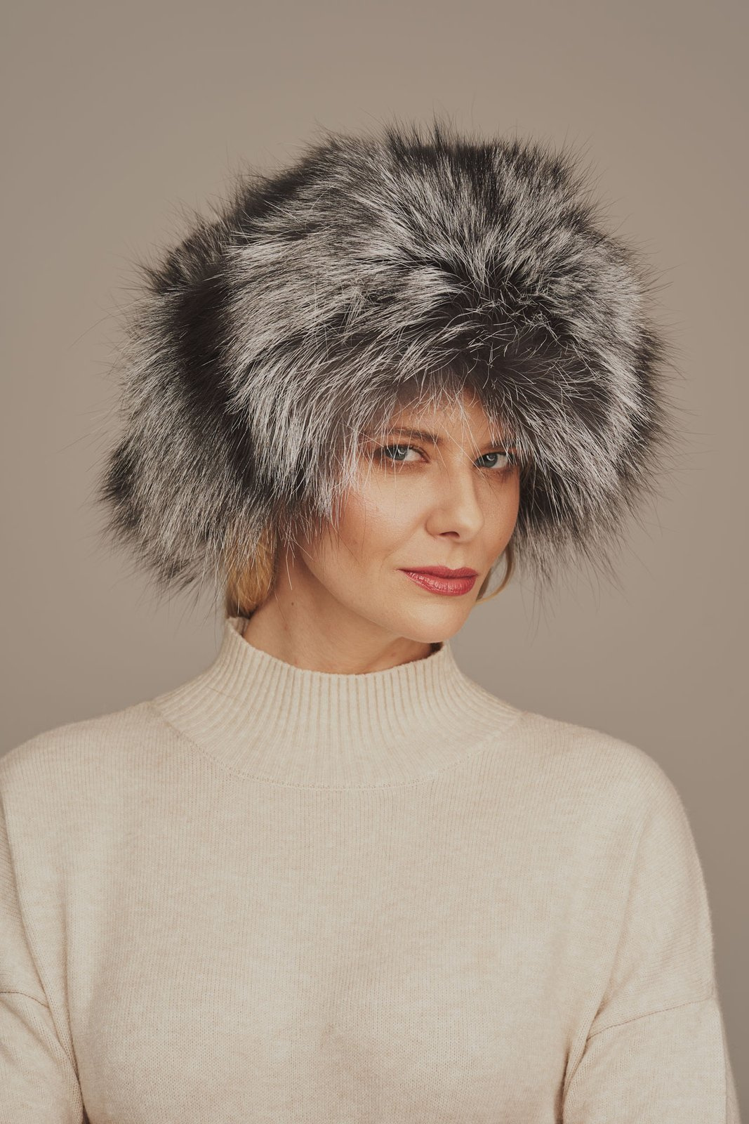 Moteriška žieminė kepurė iš natūralaus sidabrinio lapės kailio