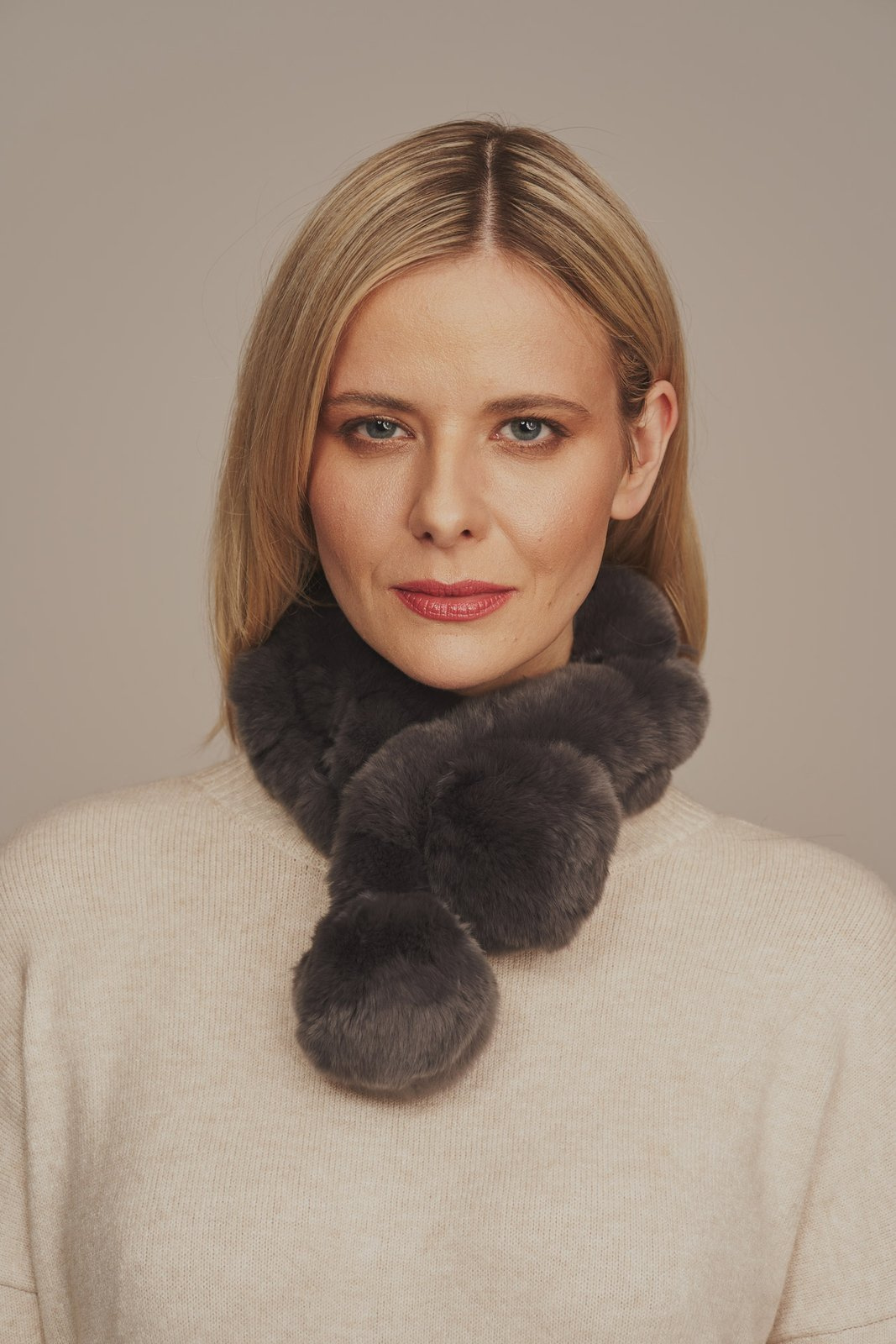 Šinšilorėkso kailio šalikėlis klasikinės pilkos spalvos – itin šiltas ir minkštas aksesuaras žiemai. Pagamintas iš aukštos kokybės natūralaus kailio, šis šalikėlis užtikrina komfortą ir šilumą net šalčiausiomis dienomis. Šalikėlis papuoštas stilingais dekoratyviniais kailiniais bumbulais, kurie suteikia žaismingumo ir išskirtinumo. Puikiai dera prie žieminių paltų ir striukių, papildydamas aprangą prabangos ir elegancijos įspūdžiu. Universalus dydis leidžia lengvai priderinti šį šalikėlį prie įvairių stilių, o natūralaus kailio kokybė garantuoja ilgaamžiškumą ir komfortą.