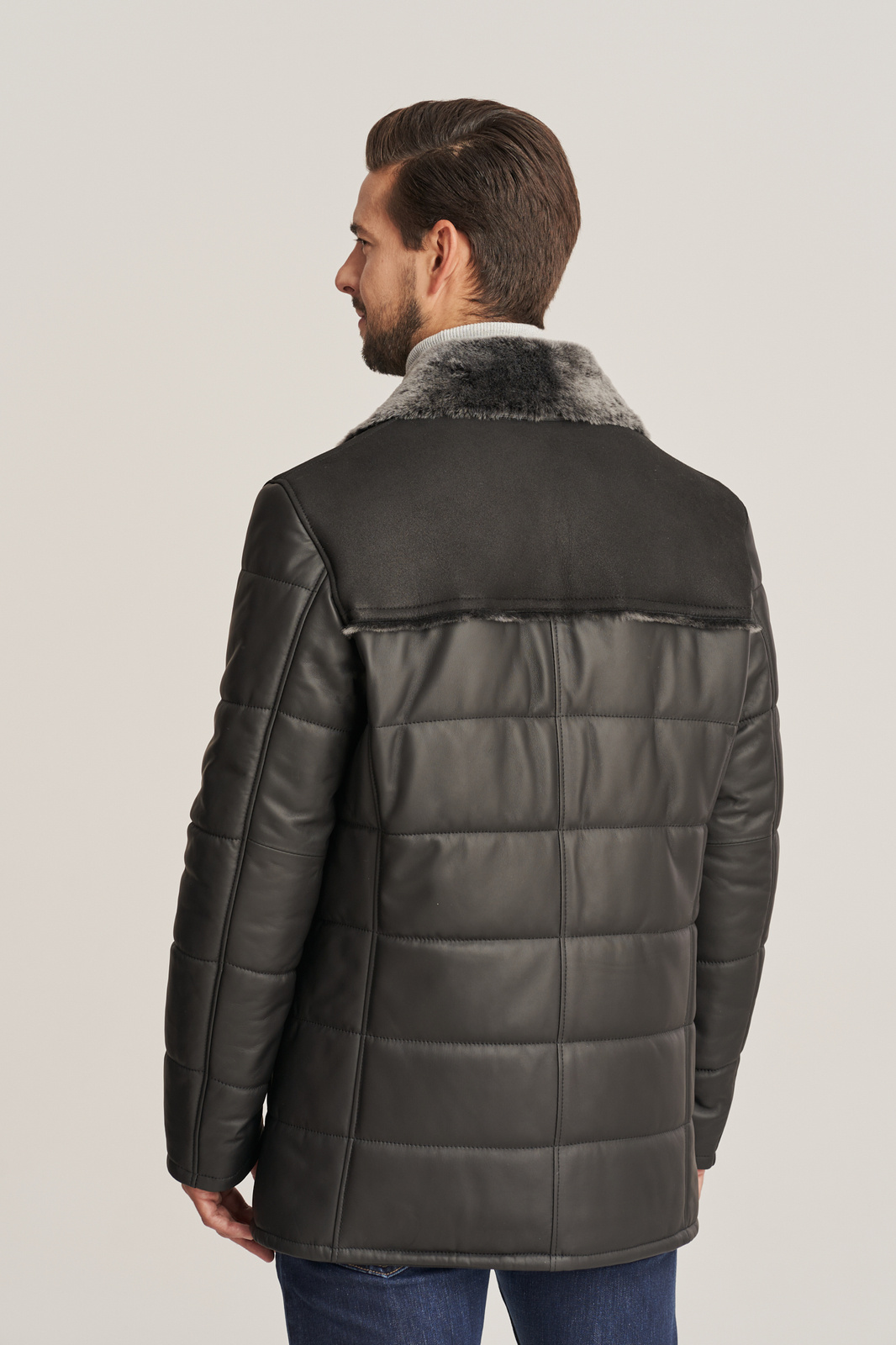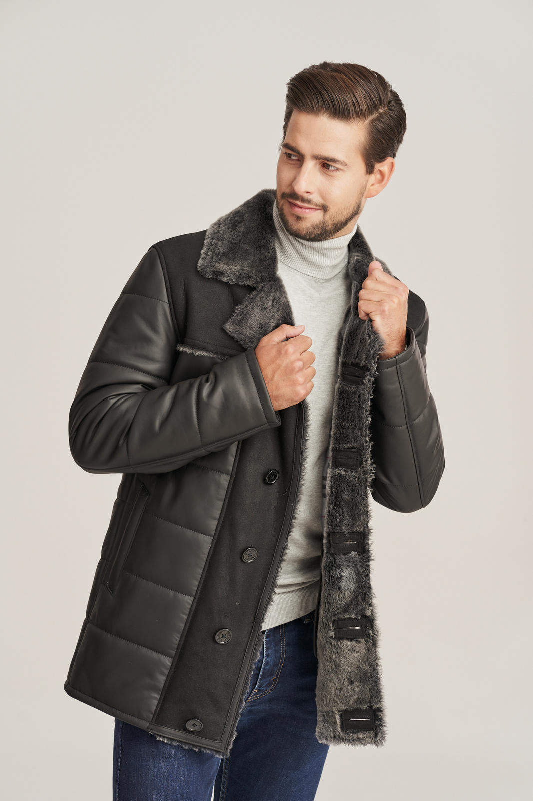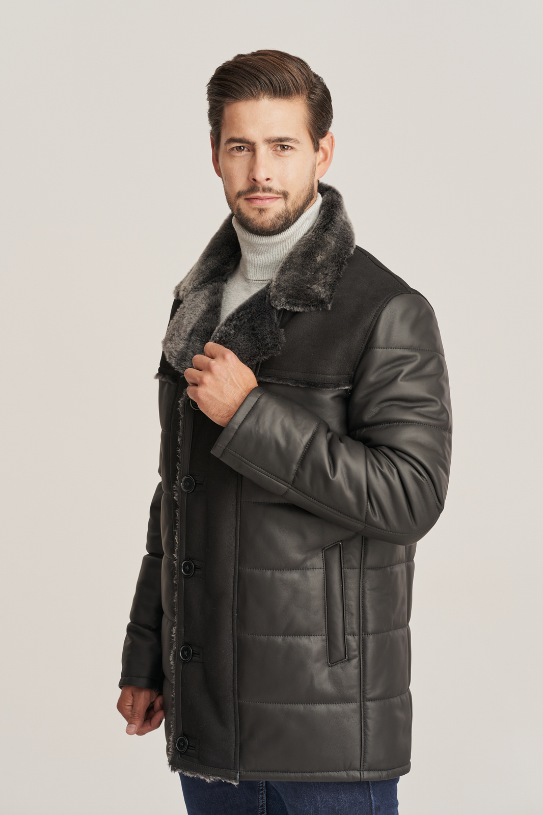 Stilinga vyriška juoda natūralios avies odos žieminė striukė su kailio detalėmis. Stilinga vyriška juoda natūralios avies odos žieminė striukė – tai išskirtinis modelis, kuriame natūrali avies oda derinama su subtiliomis kailio detalėmis. Priekinėje dalyje panaudotas natūralus ėriuko kailis suteikia išraiškingumo ir unikalumo, o likusi striukės dalis pagaminta iš aukštos kokybės natūralios lygios odos. Vidus ne su kailiu, bet kruopščiai paminkštintas šilumą sulaikančiu pašiltinimu, todėl užtikrina komfortą žiemos metu be papildomo svorio. Striukė užsegama klasikinėmis sagomis, turi dvi praktiškas įleistines kišenes ir yra ilgesnio kirpimo – siekia žemiau klubų. Dėl minimalistinio dizaino ir juodos spalvos modelis išlieka aktualus ilgą laiką, todėl tai patikimas pasirinkimas tiek miesto, tiek kasdieniam stiliui. Ši vyriška žieminė odinė striukė su kailio detalėmis tinka tiems, kurie vertina natūralių medžiagų privalumus, nepriekaištingą pasiuvimą ir universalią estetiką. Dera prie įvairių stiliaus sprendimų – nuo klasikos iki modernaus laisvalaikio įvaizdžio.
