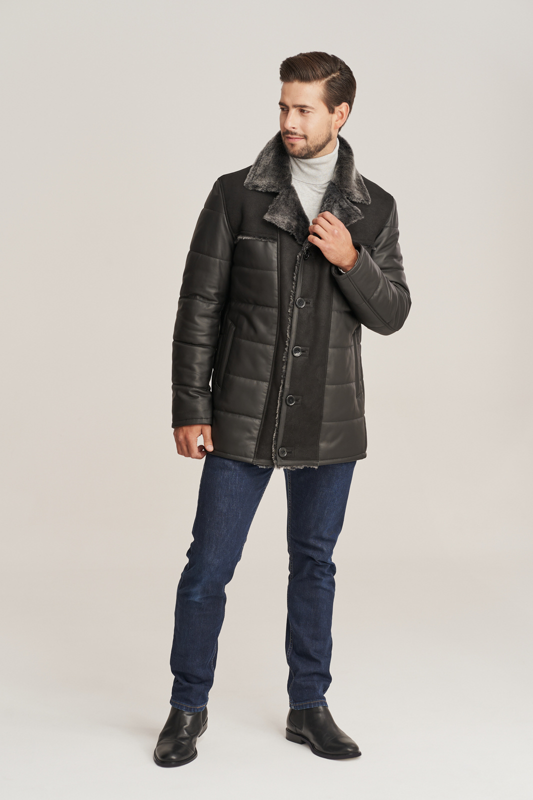Stilinga vyriška juoda natūralios avies odos žieminė striukė
