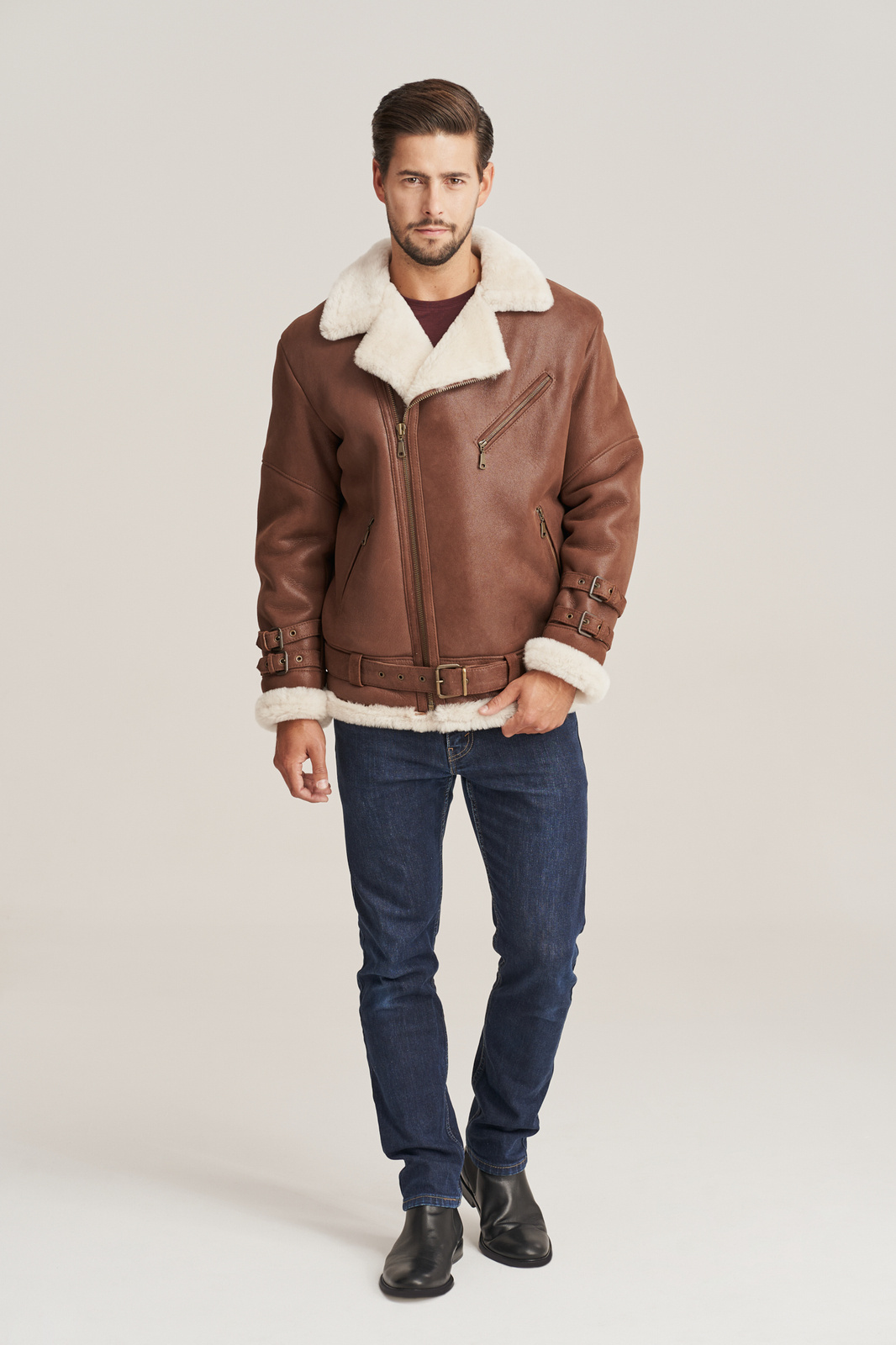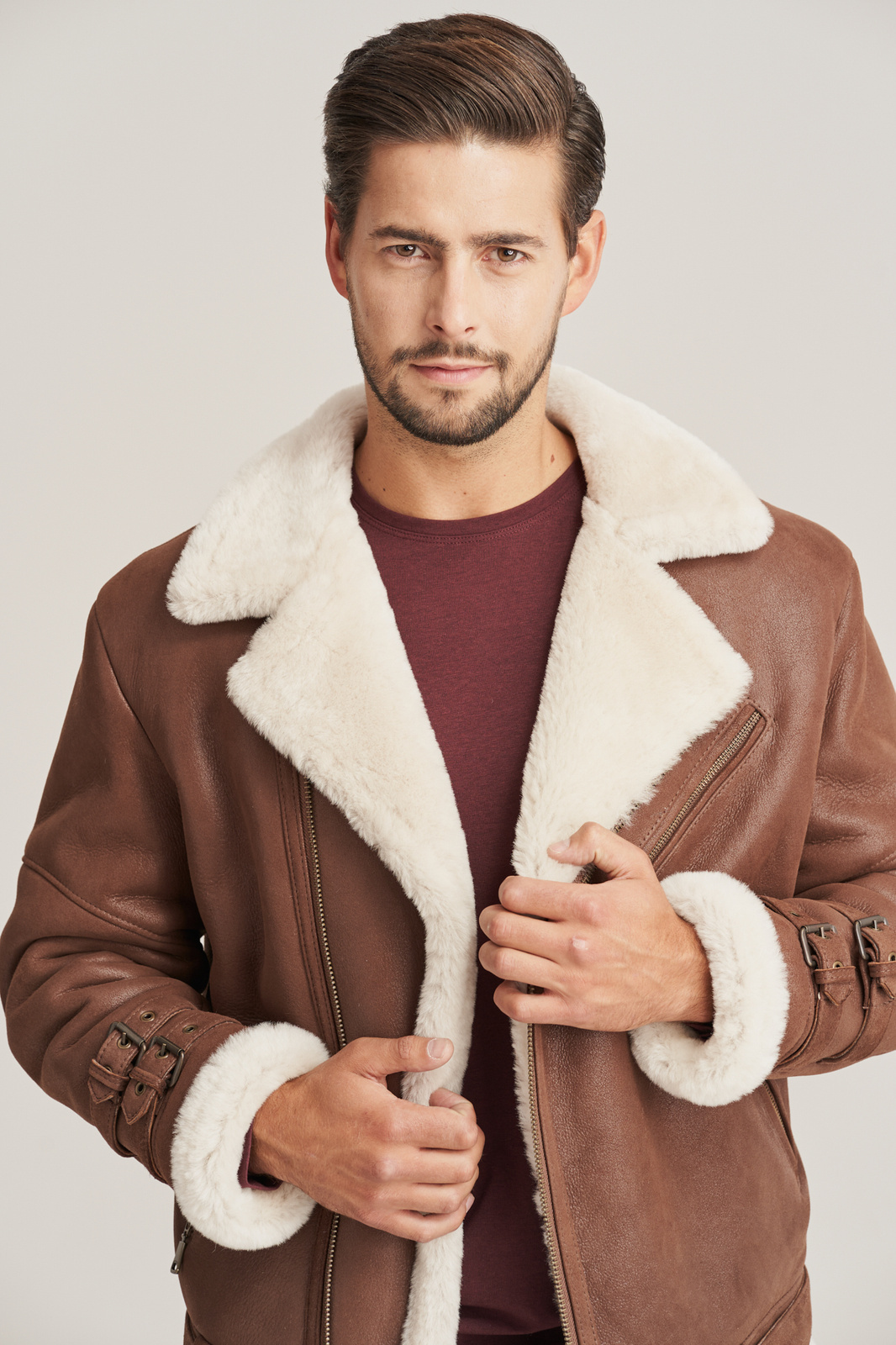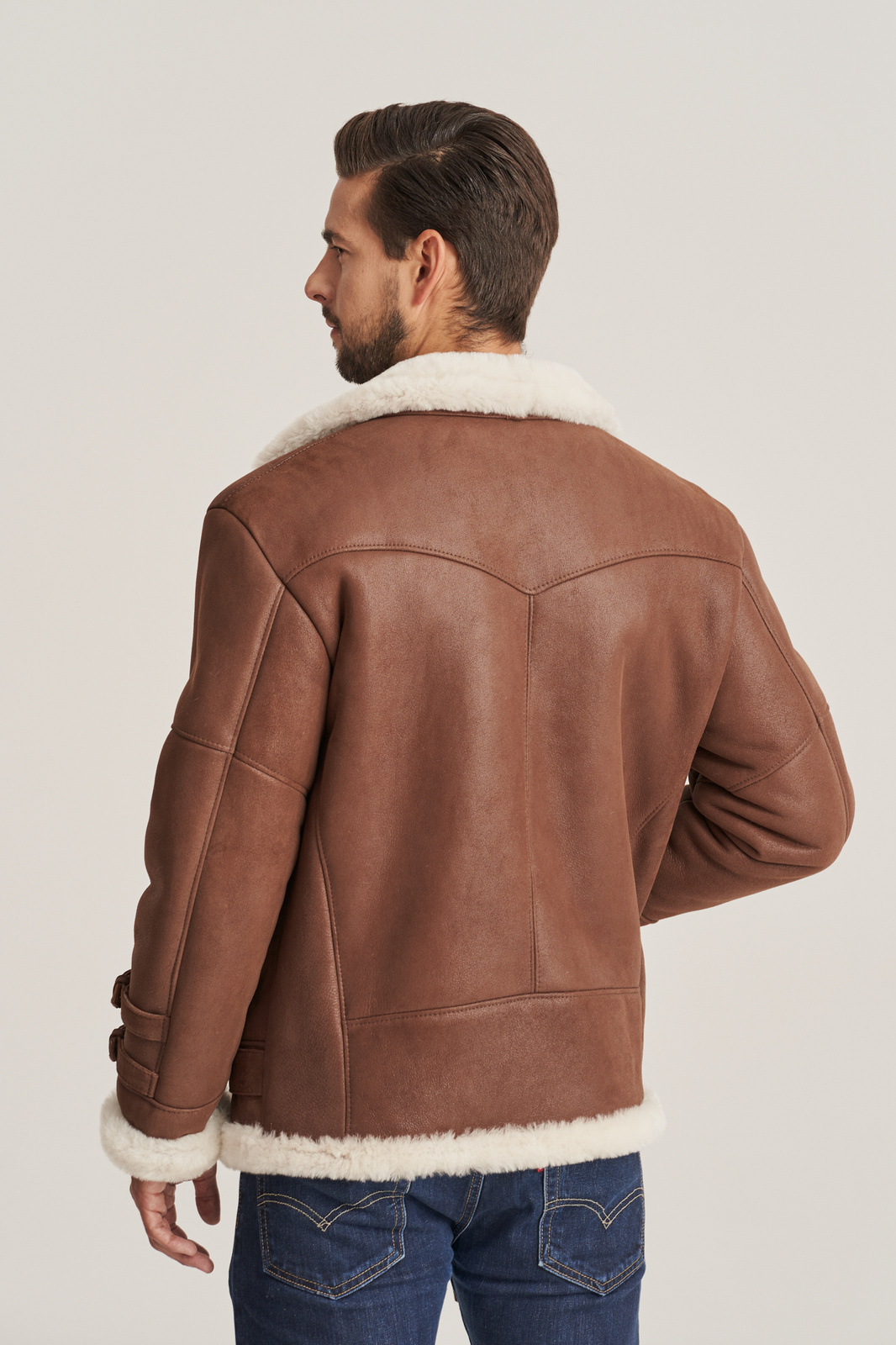 Rudas vyriškas avių kailio paltas – stilinga ir šilta odinė striukė žiemai. Stilingas rudas vyriškas avikailio paltas, sukurtas pagal klasikinį pilotka tipo kirpimą, puikiai tinka vyrams ieškantiems išskirtinio stiliaus ir komforto šaltuoju metų laiku. Ši žieminė vyriška odinė striukė pagaminta iš natūralios, lengvos ir kokybiškos ėriuko odos su baltu avių kailiu viduje, užtikrinančiu šilumą net ir šalčiausiomis dienomis. Striukė turi asimetrišką užtrauktuką, kuris suteikia jai modernų charakterį, bei tris funkcionalias kišenes, leidžiančias patogiai susidėti reikalingiausius daiktus. Rankenų ir striukės apačioje esantys reguliuojami dirželiai leidžia pritaikyti modelį prie individualaus kūno sudėjimo, o tai ne tik praktiška, bet ir pabrėžia vyrišką siluetą. Šis rudas avių kailio paltas idealiai dera su džinsais, todėl tai puikus pasirinkimas tiek kasdieniam dėvėjimui, tiek norint išsiskirti miesto gatvėse ar savaitgalio išvykoje. Vyriška avių kailio striukė – tai ne tik šiluma, bet ir nesenstanti klasika kiekvieno vyro garderobe. Ši ruda odinė striukė vyrams – tai puikus pasirinkimas norintiems išskirtinės žieminės aprangos su charakteriu.