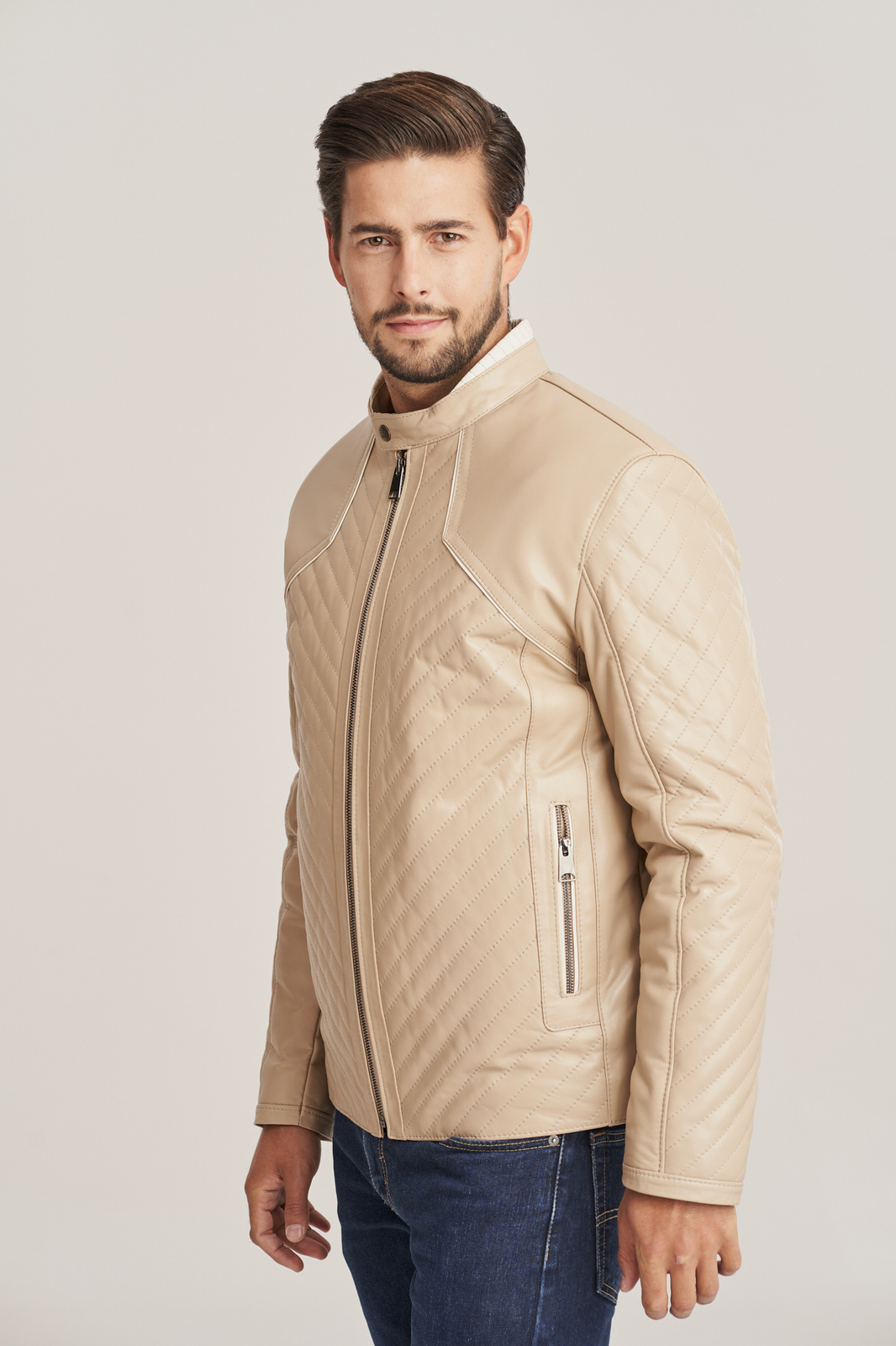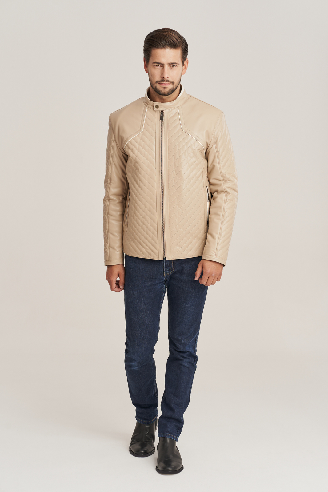 Vyriška natūralios ėriuko odos striukė smėlio spalvos – minkšta ir patvari odinė striukė vyrams