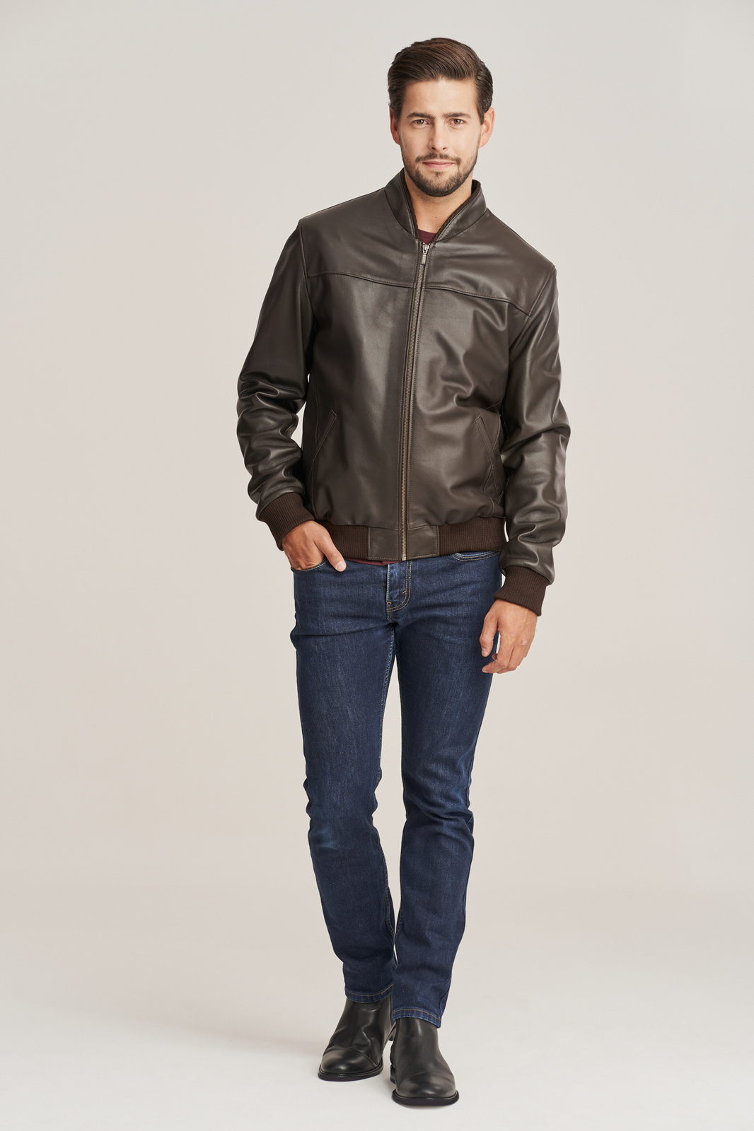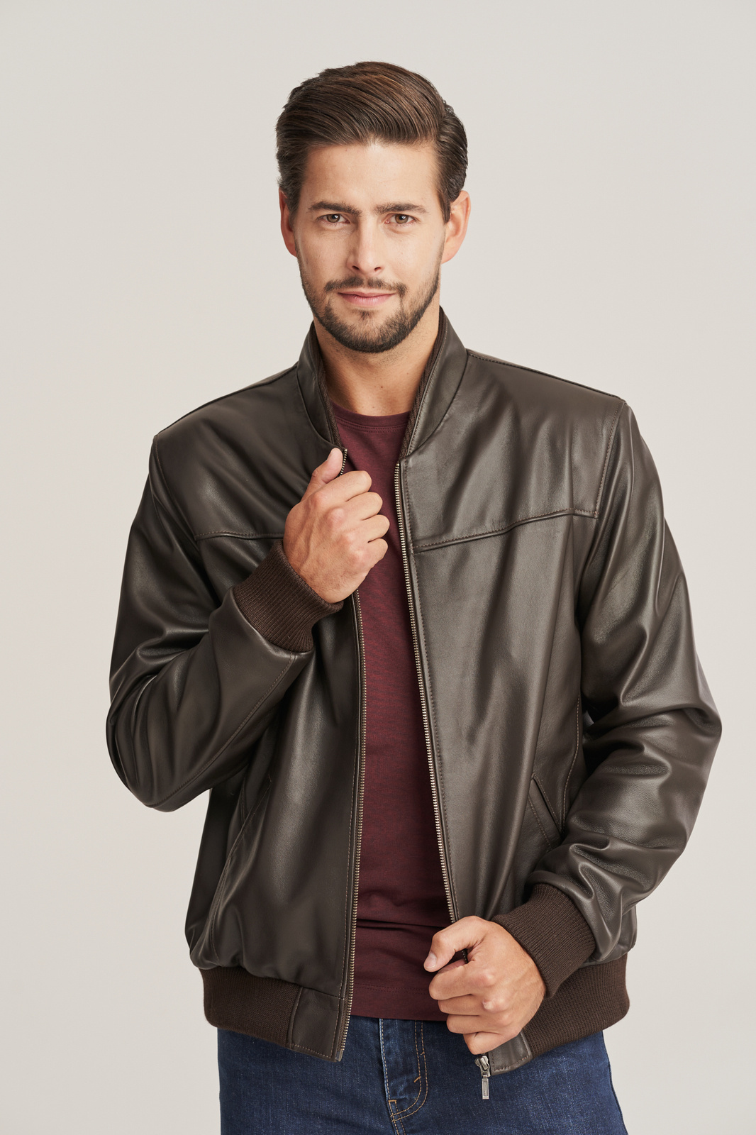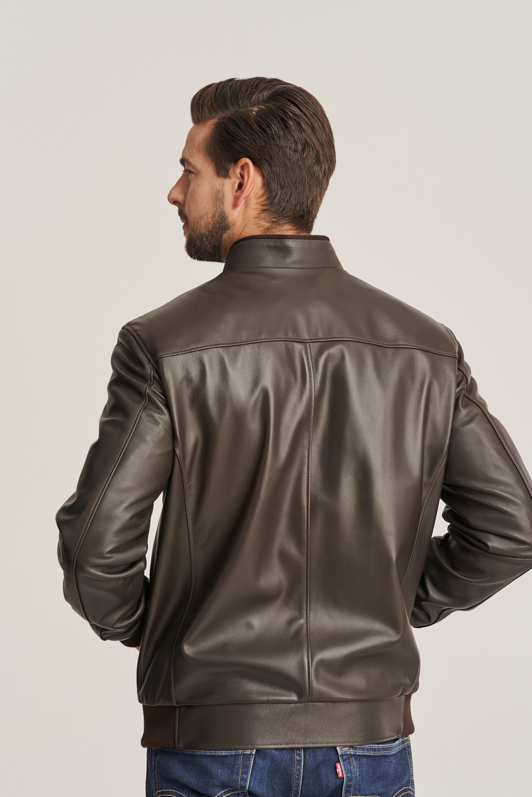 Vyriška tamsiai ruda natūralios odos bomber striukė