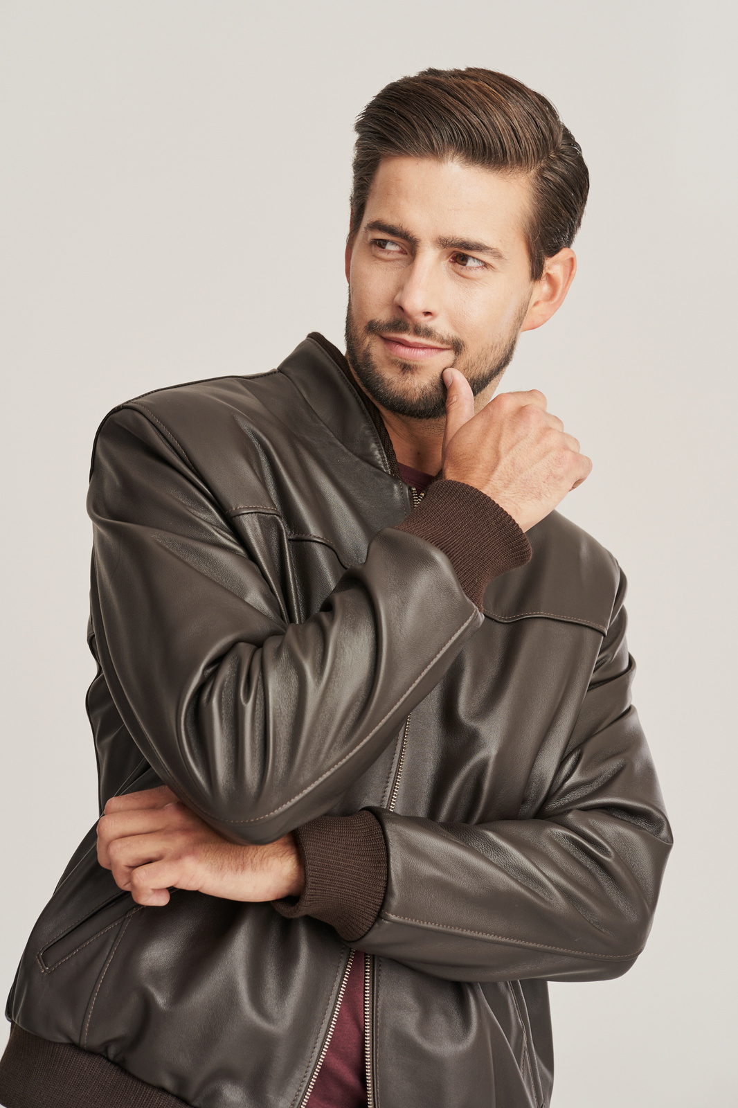 Vyriška tamsiai ruda odinė bomber striukė iš natūralios avikailio odos – stilingas pasirinkimas kiekvienai dienai. Vyriška odinė bomber striukė pasiūta iš aukštos kokybės natūralios avikailio odos, išsiskiria tamsiai ruda spalva ir miesto stiliaus estetika. Tai funkcionali ir patogi vyriška odinė striukė su užtrauktuku, puikiai tinkanti kasdieniam dėvėjimui rudenį, pavasarį ar vėsesnėmis vasaros dienomis. Modelis turi dvi įleistines kišenes, o minimalistinis stovelių tipo apykaklės dizainas suteikia subtilų elegancijos pojūtį. Odinė bomber striukė vyrams su guma ties rankogaliais ir liemeniu ne tik užtikrina puikų prigludimą, bet ir išlaiko klasikinę bomberio siluetą. Ši vyriška striukė iš natūralios odos – puikus pasirinkimas vyrams, vertinantiems kokybę, ilgaamžiškumą ir šiuolaikišką miesto stilių. Dėl savo universalumo ši ruda vyriška odinė striukė lengvai derinama tiek su džinsais, tiek su laisvalaikio kelnėmis, sukurdama tvarkingą ir madingą įvaizdį. Tai vyriška bomber stiliaus odinė striukė, kuri neperkrauta detalėmis, tačiau išlaiko visus būdingus šio modelio bruožus – praktiškumą, patogumą ir stilių.