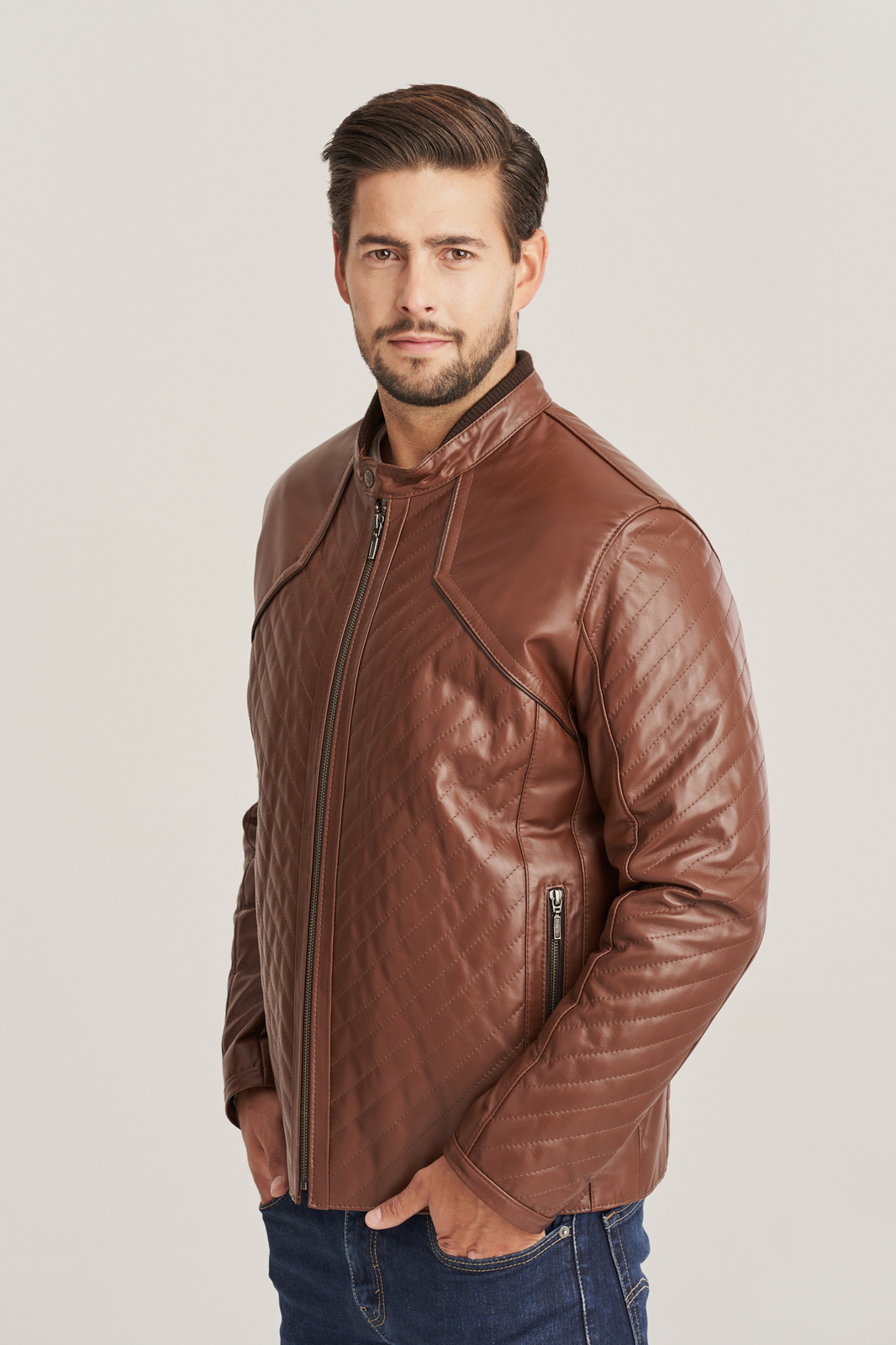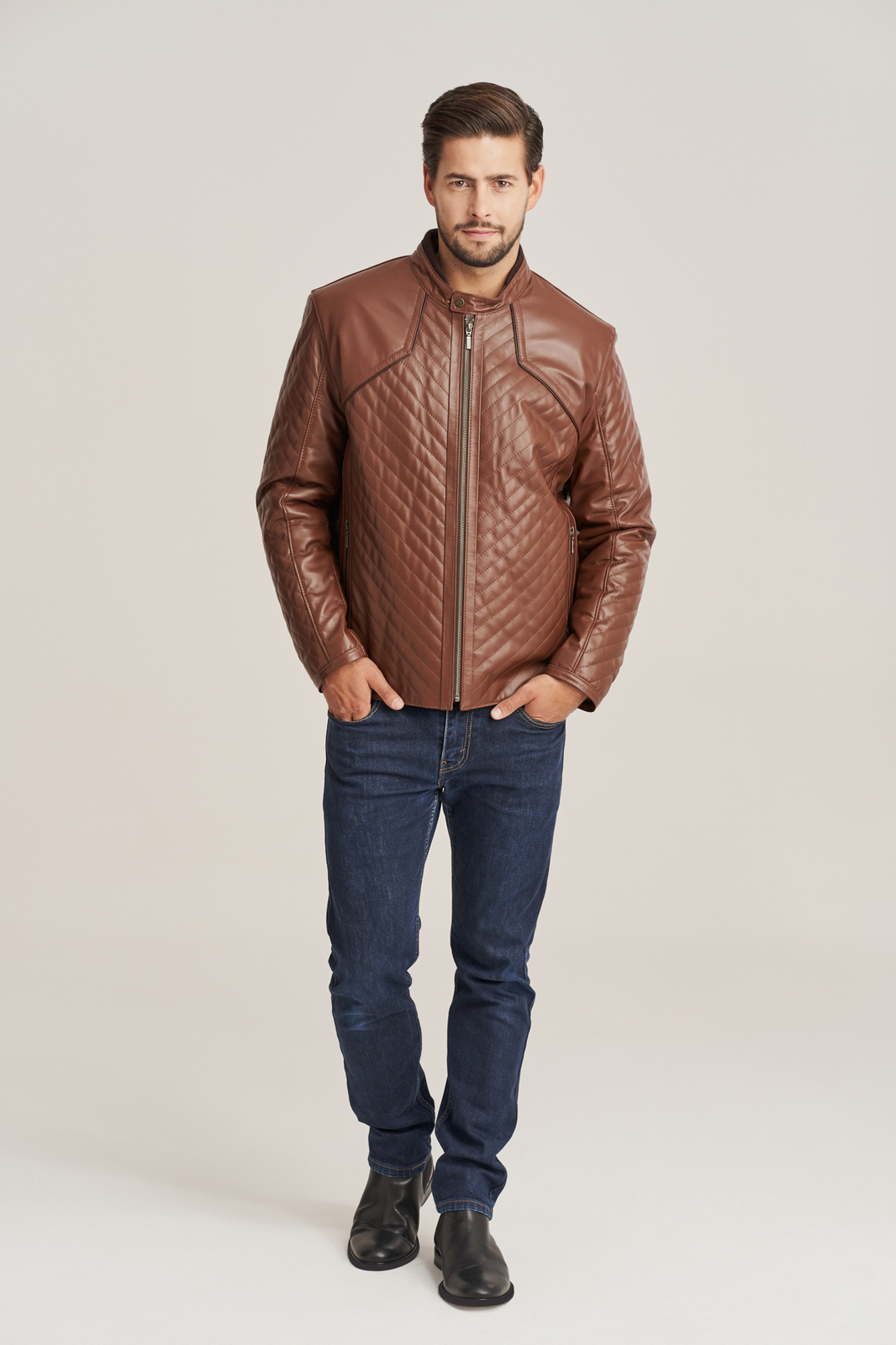 Ruda vyriška odinė striukė iš natūralios avies odos – trumpa odinė striukė su užtrauktuku ir stovinčia apykakle. Ši vyriška odinė striukė rudos spalvos pasiūta iš aukštos kokybės natūralios avies odos, kuri pasižymi minkštumu, patvarumu ir komfortu dėvint. Modelis turi užtrauktuką per visą ilgį ir stovinčią apykaklę, kurią galima užsisegti iki pat kaklo – tai puikus pasirinkimas pereinamajam sezonui. Striukės dizainą pagyvina įdomūs dekoratyviniai apsiuvai ir siuvinėjimai tamsesniu rudos atspalviu ties kišenėmis ir apykakle, suteikiantys modeliui išskirtinumo ir stiliaus. Dėl trumpo kirpimo iki klubų, ši vyriška ruda odinė striukė idealiai tinka tiek kasdieniam, tiek laisvalaikio įvaizdžiui. Tai puikus pasirinkimas ieškantiems vyriškos odinės striukės rudeniui ar pavasariui, kuri ne tik stilinga, bet ir patogi bei praktiška. Vyriška odinė striukė su užtrauktuku ir natūralios odos apdaila – kokybė, kuri matoma ir jaučiama.