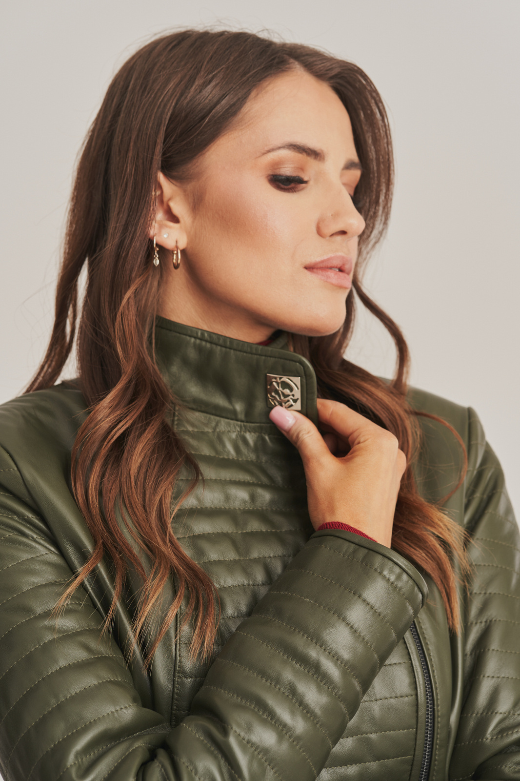 Moteriškas natūralios avies odos paltas alyvuogių žalios spalvos – stilingas ir funkcionalus pavasariui bei rudeniui. Šis moters natūralios odos paltas alyvuogių žalios spalvos pagamintas iš aukštos kokybės avies odos, suteikia elegancijos ir komforto vėsesnėms dienoms. Modernus dizainas su asimetriniu užtrauktuku pabrėžia unikalumą ir stilingą įvaizdį. Paltas turi dvi patogias įleistines kišenes, kurios užtikrina praktiškumą ir saugumą. Stovimas apykaklės modelis su spaustukais suteikia papildomos apsaugos ir išbaigtumo. Išskirtiniai siuvimo akcentai (pikavimo detalės) paverčia šį natūralios avies odos paltą su asimetriniu užtrauktuku išskirtine ir charakteringa drabužio detale. Aukštos kokybės pamušalas užtikrina šilumą ir patvarumą, todėl šis odinis paltas su įleistinėmis kišenėmis moterims puikiai tinka pavasario ir rudens sezonams.