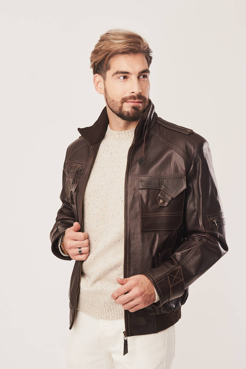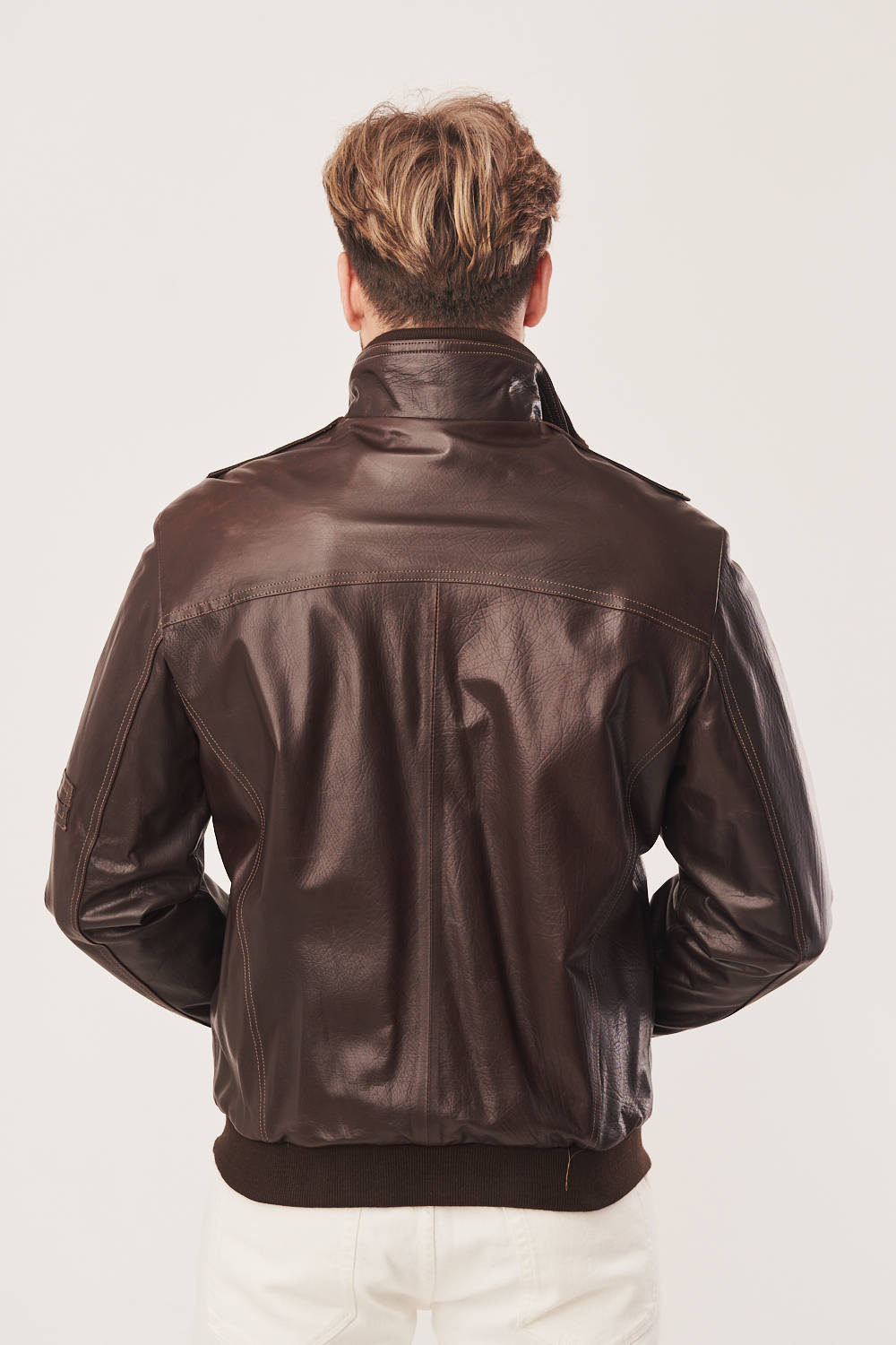 Vyriška ruda odinė pilotka – tvirta avies oda ir sportiškas dizainas rudeniui ir pavasariui