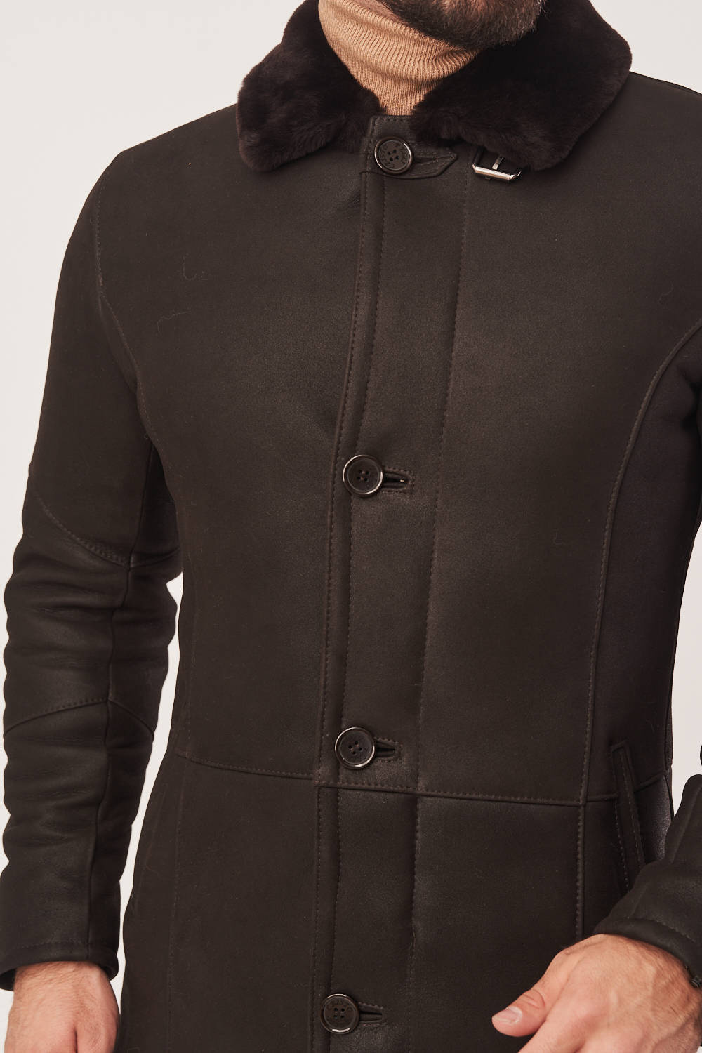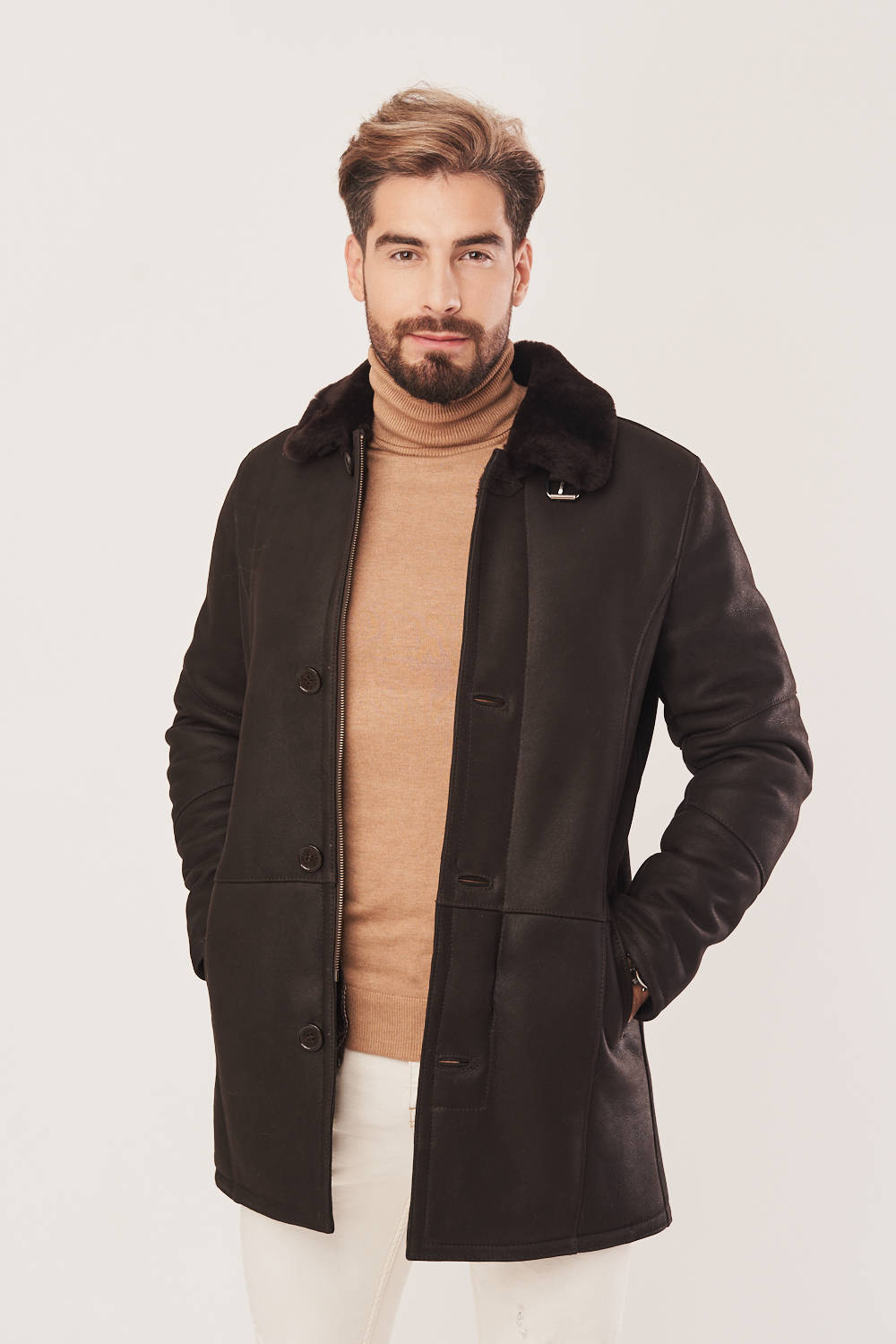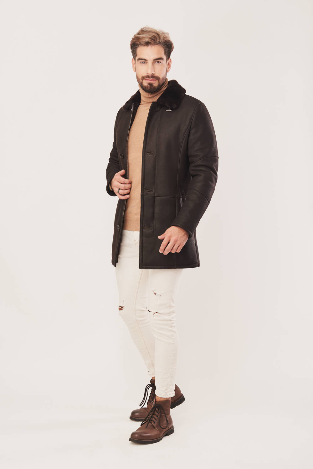 Vyriškas žieminis avikailio paltas – tamsiai šokolado rudos spalvos. Elegantiškas vyriškas žieminis paltas iš natūralios avikailio odos – tai puikus pasirinkimas vyrams, vertinantiems kokybę, komfortą ir klasikinį stilių. Pagamintas iš švelnios, lengvos ir natūralios ėriuko odos (avikailio), šis vyriškas kailinis paltas puikiai apsaugo nuo šalčio ir vėjo net ir atšiauriausiomis žiemos dienomis. Minkštas, natūralus kailis viduje užtikrina išskirtinę šilumą, o išorė – elegantišką ir rafinuotą išvaizdą. Žieminis vyriškas avikailio paltas turi aukštą apykaklę-stovą su galimybe užsegti iki pat kaklo – puikus sprendimas norintiems išlikti šiltiems be papildomo šaliko. Viduje – patogus užtrauktukas, kurį dengia papildoma juosta su sagomis, užtikrinanti dar geresnę apsaugą nuo vėjo. Šis modelis – ne sportinio tipo, o klasikinis vyriškas avikailio paltas, kuris išliks madingas ir funkcionalus ne vieną sezoną.