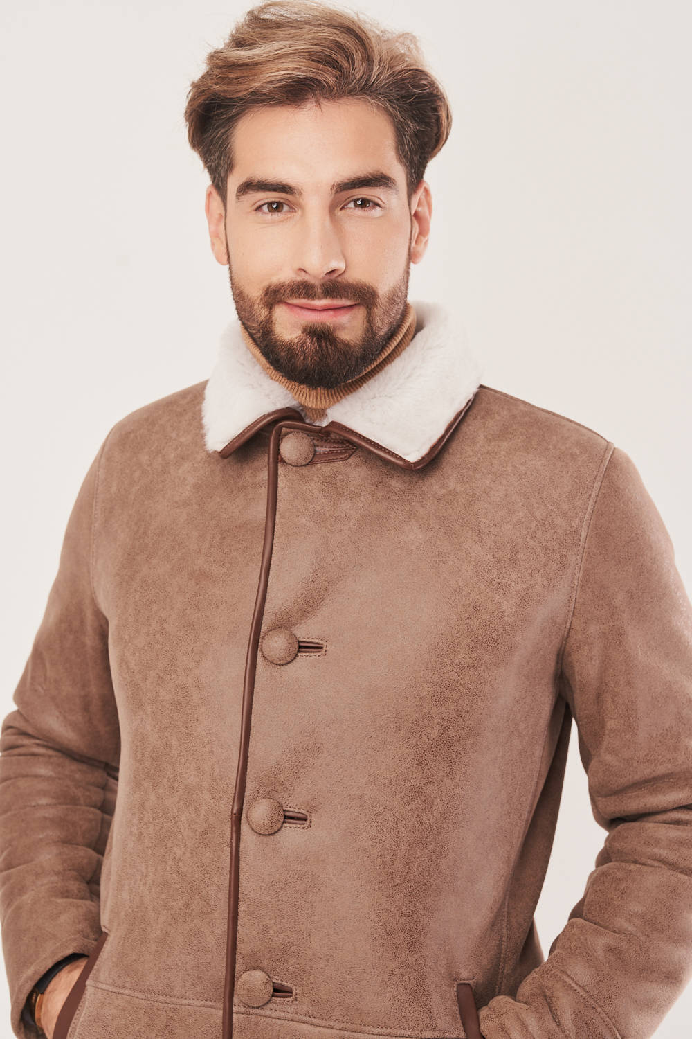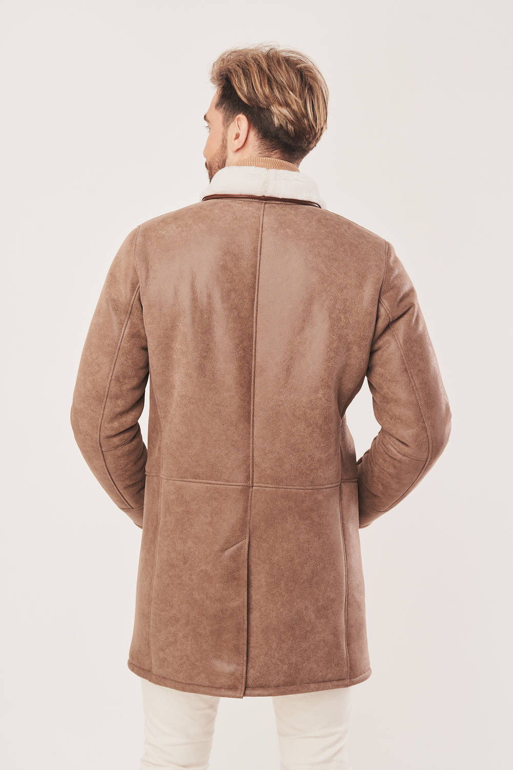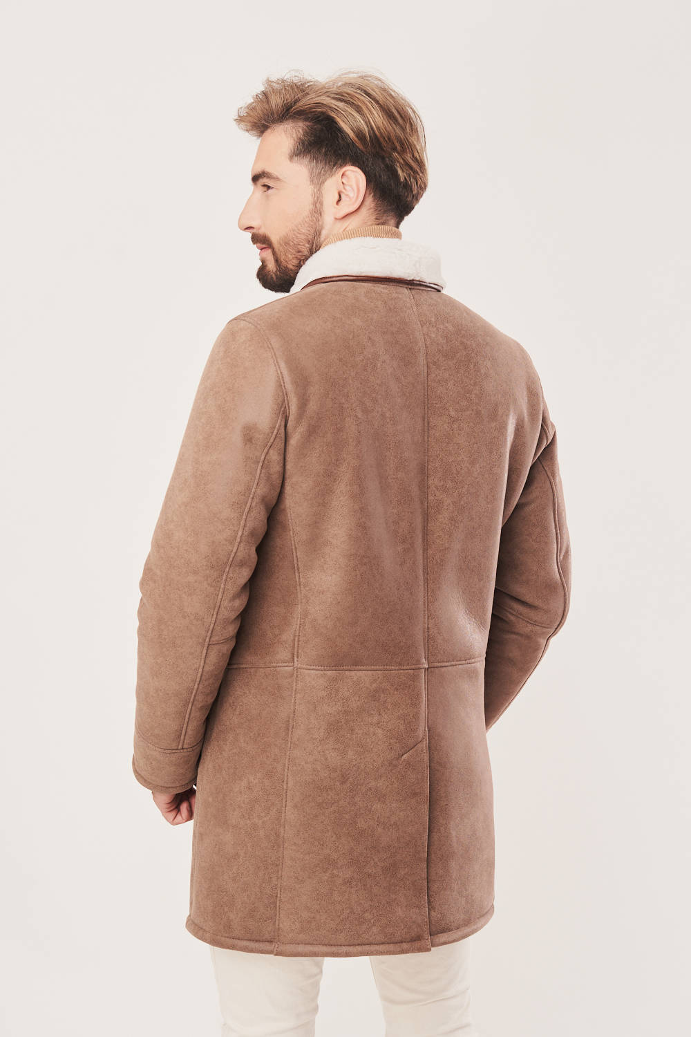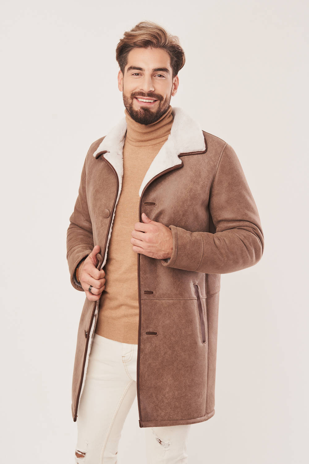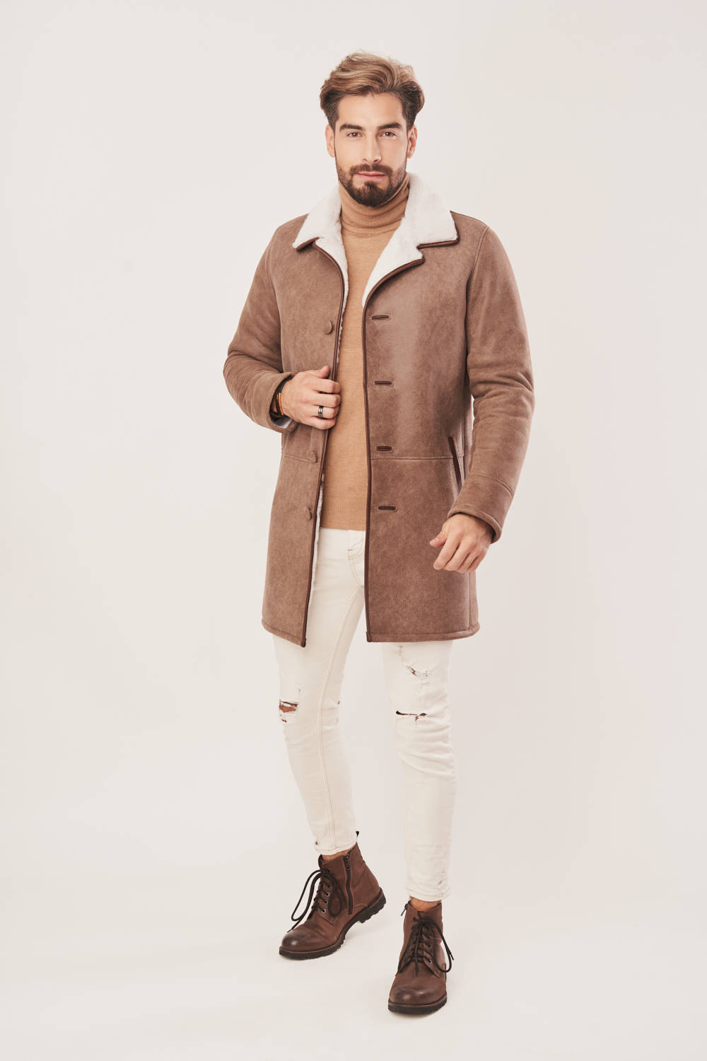 Vyriškas smėlio spalvos žieminis paltas iš natūralios avikailio odos – elegancija, šiluma ir ilgaamžiškumas. Vyriškas avikailio paltas – puikus pasirinkimas ieškantiems derinio tarp klasikinės elegancijos ir funkcionalumo. Ilgas vyriškas žieminis paltas, pasiūtas iš natūralios avikailio odos, kuri pasižymi švelnumu, tvirtumu ir ilgaamžiškumu. Jo smėlio spalva pabrėžia subtilų rafinuotumą, o tiesus, klasikinis kirpimas suteikia universalumo, leidžiančio lengvai derinti su tiek laisvalaikio, tiek dalykine apranga. Modelis turi sagas aptrauktas oda ir dekoratyvinius bei apsauginius apvadus iš lygios nappa odos ties apykakle ir kišenėmis. Vidinė natūrali avikailio vilna užtikrina aukščiausio lygio šilumą net ir šalčiausiomis žiemos dienomis. Šis paltas – tai viena iš populiariausių avikailio paltų vyrams, pasižyminti ne tik puikia šilumine izoliacija, bet ir elegantiška išvaizda, kuri niekada neišeis iš mados.
