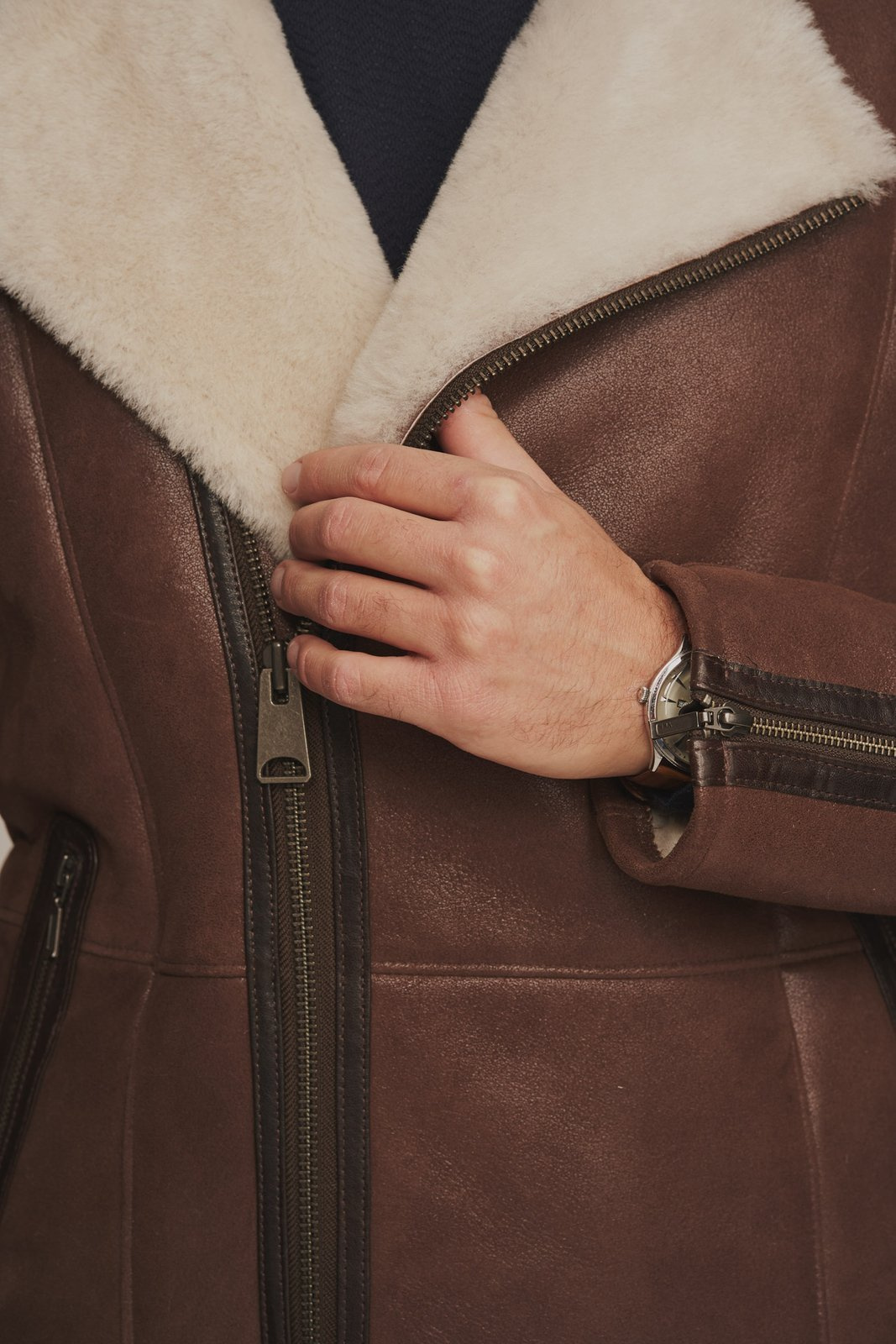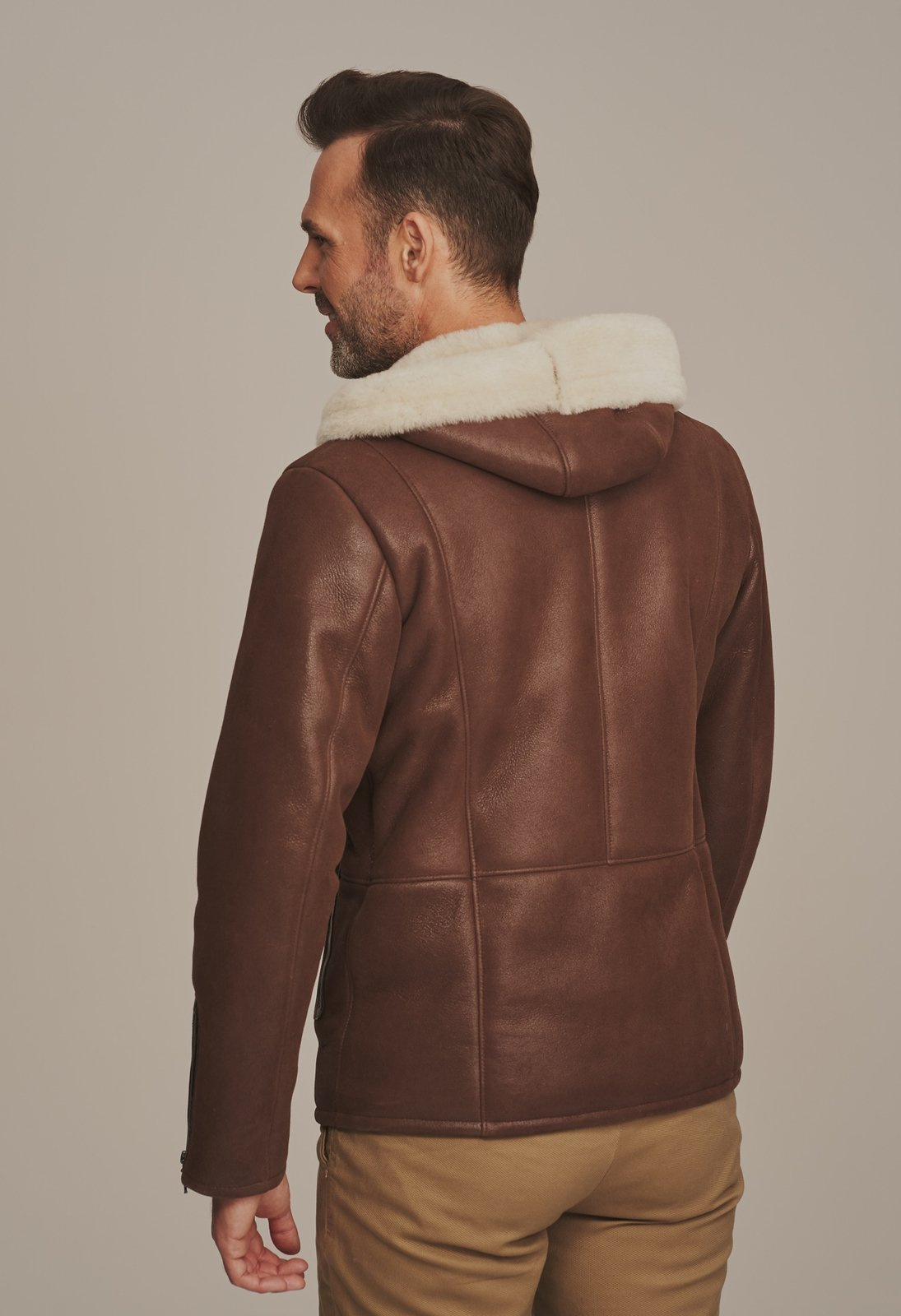 Sportinė vyriška žieminė striukė iš natūralios avikailio odos su gobtuvu – šiluma ir apsauga nuo vėjo. Ši sportinė vyriška žieminė striukė iš natūralios avikailio odos pagaminta iš švelnios, šiek tiek impregnuotos ir matinės natūralios avikailio odos su trumpu kailiu, šviesiai rudos spalvos. Modelis yra funkcionalus ir stilingas, puikiai tinkantis žiemos sezonui. Vyriška žieminė striukė su gobtuvu turi dvi įleistines kišenes, suteikiančias patogumą ir praktiškumą kasdieniam naudojimui. Ši sportinė avikailio striukė vyrams papildyta lygios natūralios odos apvadais ties kišenėmis ir užtrauktukais, kurie užtikrina patvarumą ir eleganciją. Gobtuvas yra pagrindinis šios vyriškos striukės su gobtuvu privalumas – jis efektyviai saugo nuo šalčio ir vėjo, puikiai tinka vyrams, nemėgstantiems dėvėti kepurių.