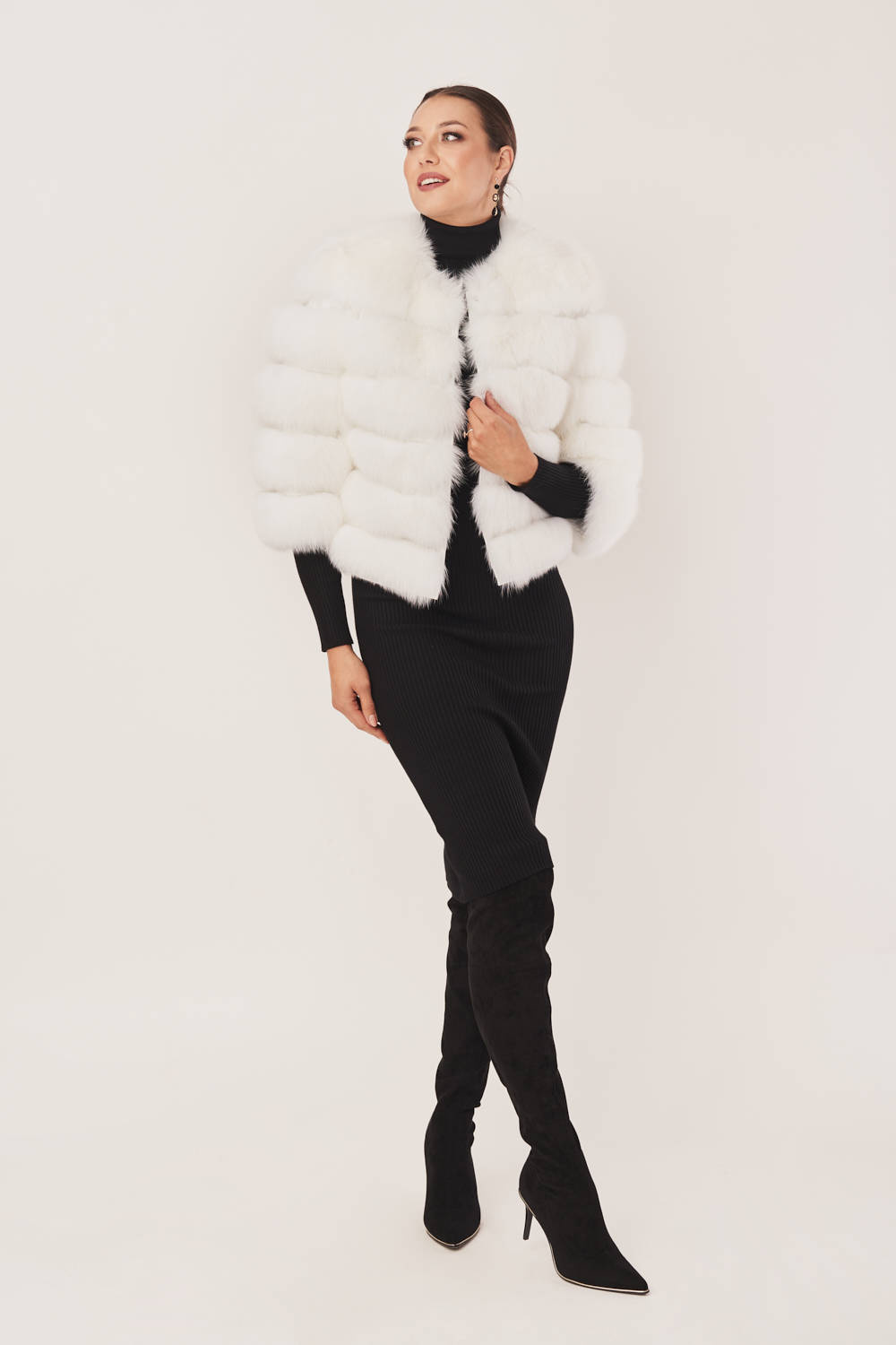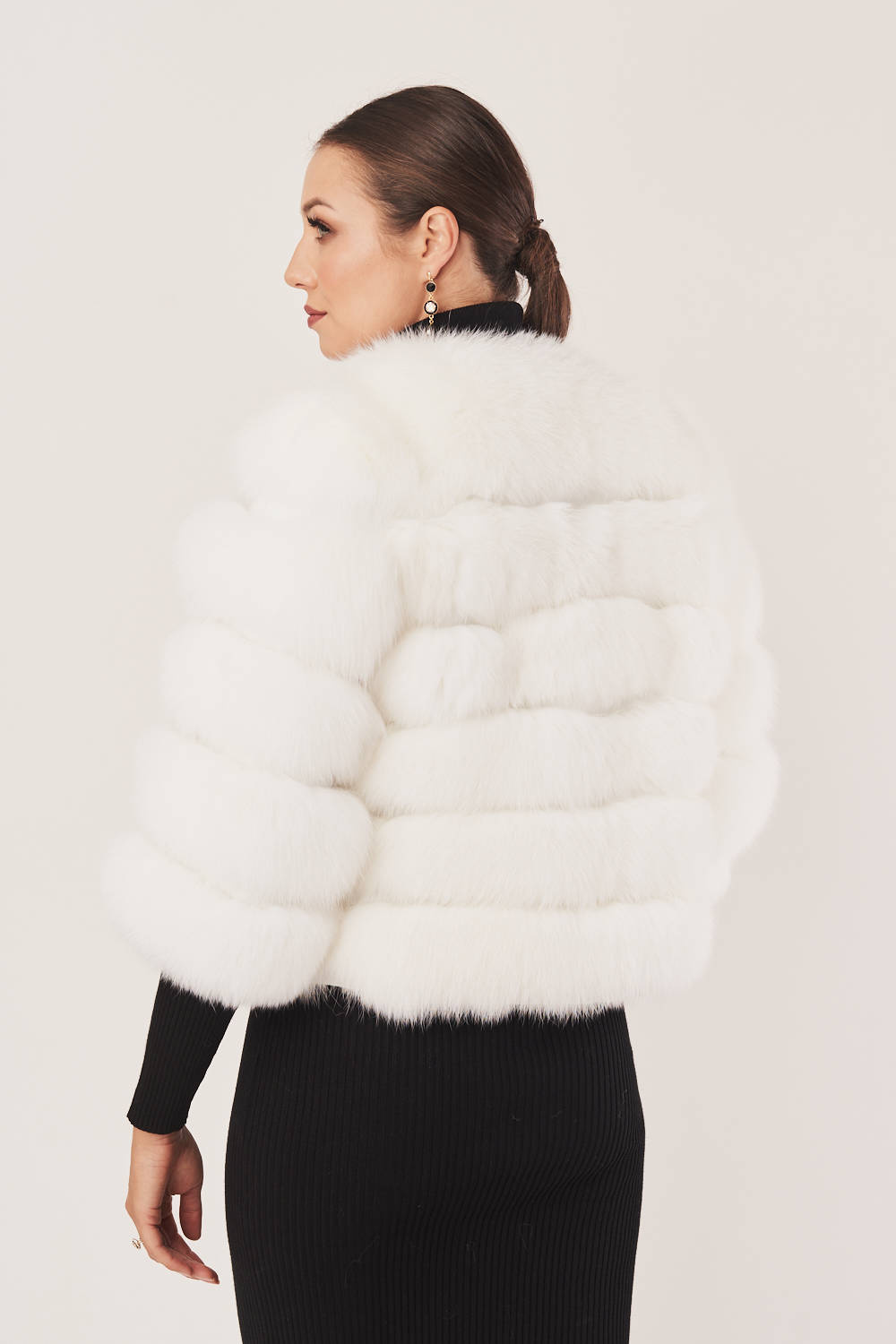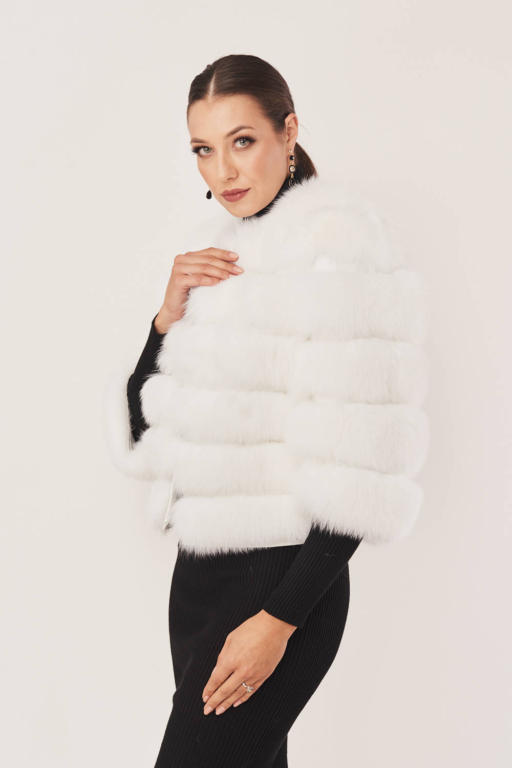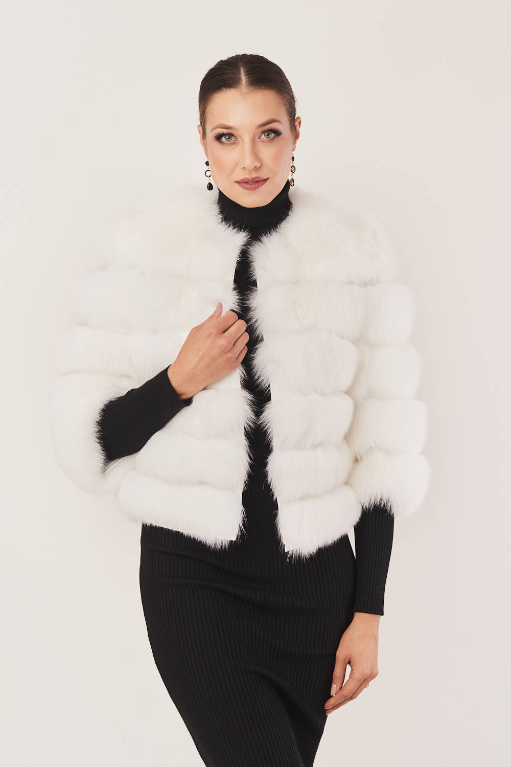 Stilingas baltas kailinis švarkas iš natūralaus lapės kailio su avikailio oda