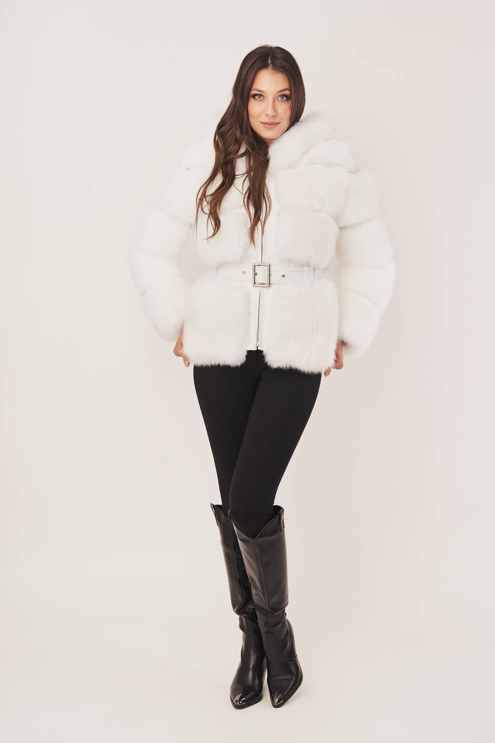 Baltas moteriškas kailinis švarkas iš natūralaus lapės kailio – rafinuota elegancija, sukurta šiuolaikiškai moteriai. Šis prabangus kailinis švarkas išsiskiria išskirtiniu sniego baltumo atspalviu, kuris pabrėžia subtilų grožį ir išlieka klasika visais sezonais. Aukščiausios kokybės lapės kailis kruopščiai derinamas su natūralia avies oda, kad būtų sukurtas dizainas, vizualiai liekninantis figūrą. Lengvai įliemenuotas siluetas idealiai priglunda prie kūno, o užtrauktuku užsegamas kailinis su gobtuvu ne tik puikiai apsaugo nuo vėjo, bet ir suteikia modernų akcentą. Kailinis švarkas moterims pasižymi universalumu – jis dera tiek prie elegantiškų, tiek prie kasdienių derinių. Viduje esantis aukštos kokybės pamušalas užtikrina šilumą bei komfortą, todėl šis modelis yra ne tik stilingas, bet ir funkcionalus. Tai išskirtinis lapės kailio švarkas, skirtas moterims, kurios vertina nepriekaištingą kokybę, laikui nepavaldų dizainą ir subtilią prabangą. Kailinis švarkas iš natūralaus kailio – tai drabužis, kuris kalba apie statusą, skonį ir pasitikėjimą savimi.