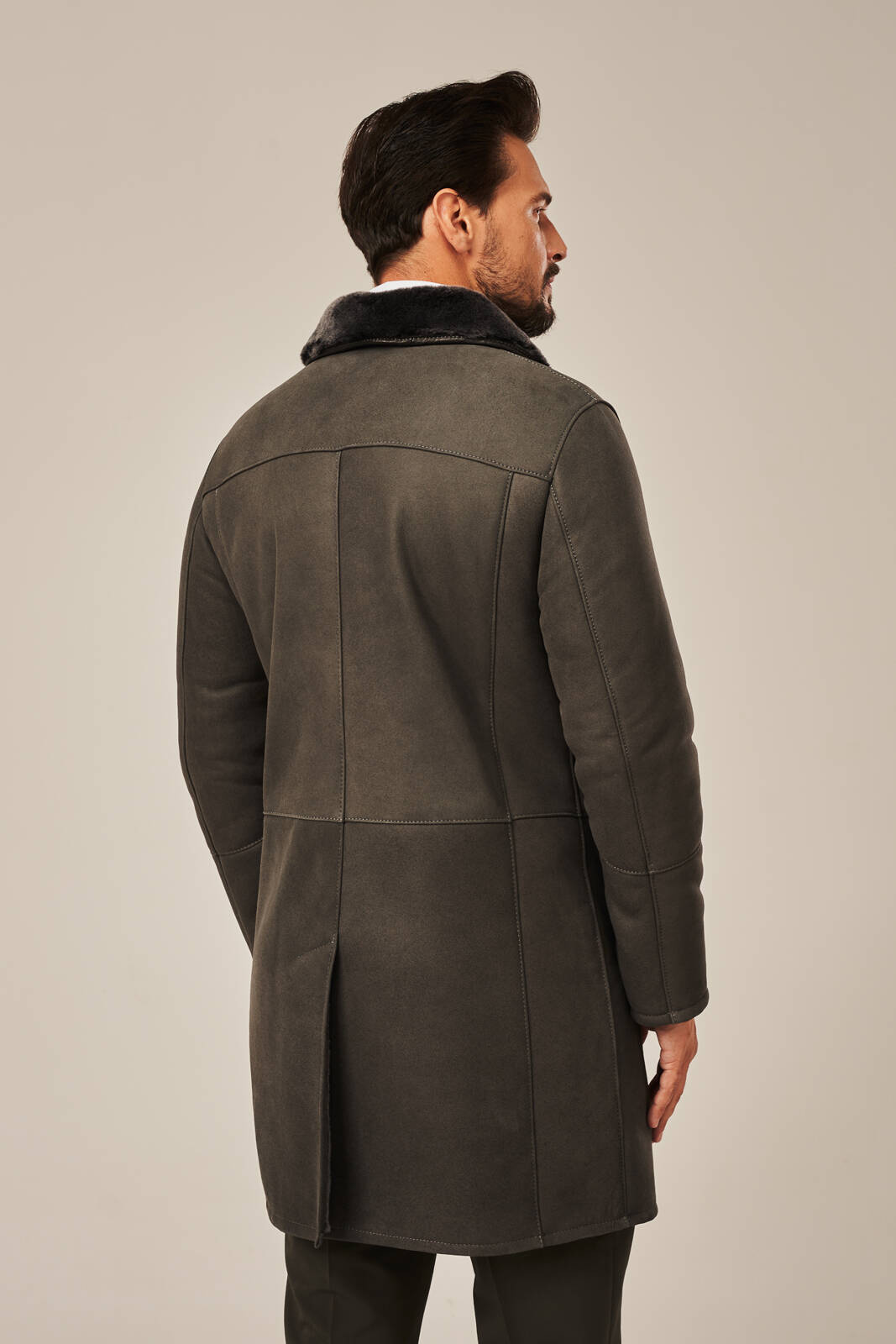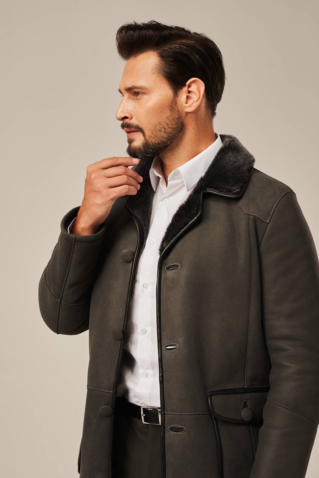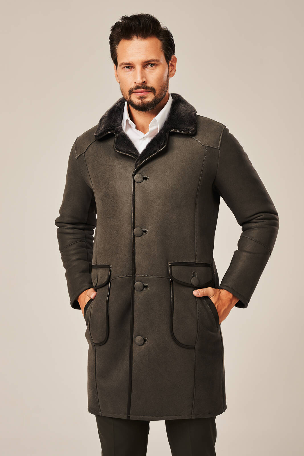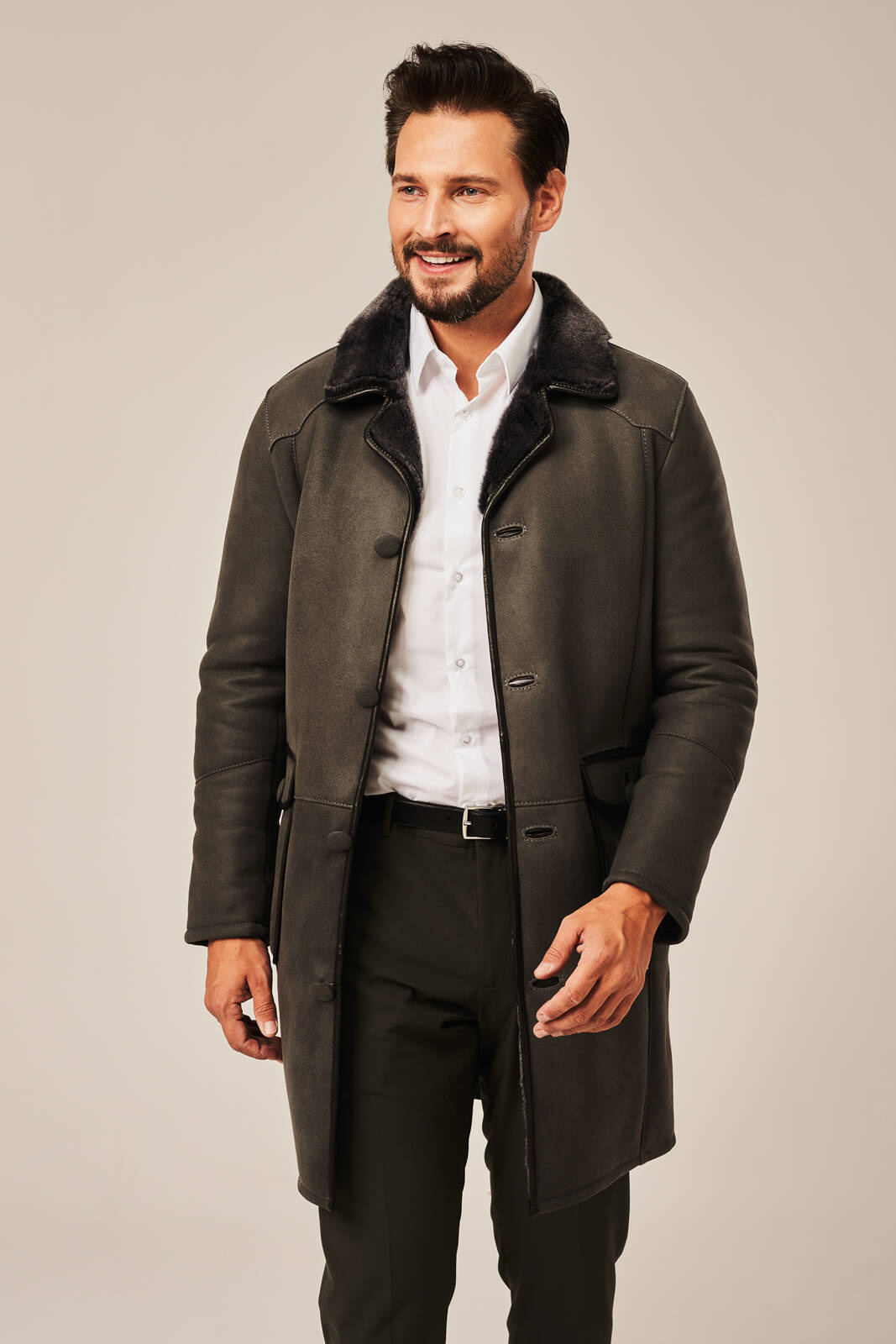 Tikras vyriškas avikailio paltas žiemai – ilgas pilkas kailinis iš natūralios avikailio odos. Stilingas ir ilgaamžis tikras vyriškas avikailio paltas žiemai, pagamintas iš aukštos kokybės, impregnuotos natūralios avikailio odos, užtikrina nepriekaištingą šilumą ir komfortą net atšiauriausiomis žiemos dienomis. Vidinę pusę dengia švelnus ir minkštas ėriuko kailis, kuris efektyviai palaiko pastovią kūno temperatūrą, todėl tai puikus pasirinkimas vyrams, vertinantiems natūralias medžiagas ir aukštą kokybę. Paltas turi dvi patogias įleistines kišenes ir dar dvi, kurios susegamos sagomis – tai leidžia saugiai nešiotis svarbiausius daiktus. Ilgas modelis buvo kruopščiai suprojektuotas taip, kad puikiai tiktų dėvėti ir su kostiumu ar švarku, todėl šis avikailio paltas vyrams puikiai dera tiek prie klasikinio, tiek prie laisvesnio stiliaus. Papildomo išskirtinumo šiam vyriškam žieminiam paltui suteikia rankų darbo natūralios odos apsiuvai šiek tiek tamsesniame pilkame atspalvyje – tai detalė, kuri ne tik sustiprina paltą, bet ir priduoda charakterio bei elegancijos. Norintiems visumos įvaizdžio, galima papildomai įsigyti ir tokią pačią kepurę, puikiai derančią prie palto spalvos. Avikailio paltai vyrams – tai ne tik šiluma, bet ir išliekanti vertė.