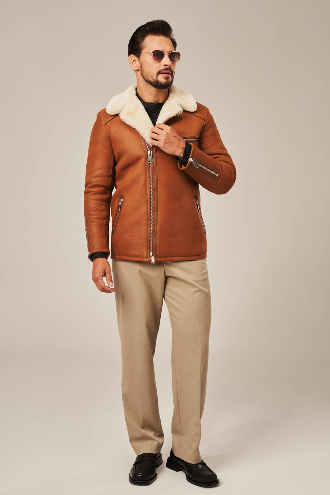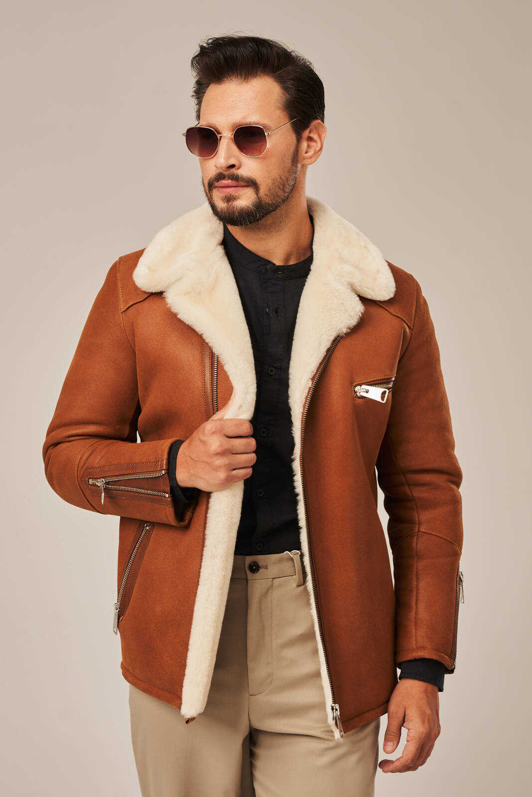 Vyriškas trumpas avikailio paltas – rūdžių spalvos. Vyriškas trumpas paltas pagamintas iš aukštos kokybės natūralios avikailio odos, suteikiantis šiltą ir patogų dėvėjimą šalčiausiomis žiemos dienomis. Šis avikailio paltas puikiai suderina modernų dizainą ir funkcionalumą, užtikrindamas apsaugą nuo šalčio neprarandant stilingo vaizdo. Vidus išklotas minkšta natūralia avikailio kailiu, kuris palaiko pastovią kūno temperatūrą ir suteikia komfortą net šalčiausiomis dienomis. Rūdžių spalva suteikia vyriškumo ir lengvai derinama su kasdieniais drabužiais. Paltas turi aukštą reguliuojamą apykaklę, kurią galima užsegti iki pat kaklo, apsaugant nuo vėjo. Užsegamas šonu šiek tiek paslinktu užtrauktuku, kuris suteikia modernumo ir originalumo. Trys išorinės kišenės su užtrauktukais yra patogios ir praktiškos, nepažeidžiant elegantiško silueto. Pagamintas iš natūralių medžiagų, šis avikailio paltas yra puikus pasirinkimas vyrams, vertinantiems kokybę, ilgaamžiškumą ir šilumą žiemos sezonu. Derinkite jį su klasikinėmis kelnėmis ar džinsais ir megztiniu – šis paltas taps nepamainoma jūsų žiemos garderobo dalimi.