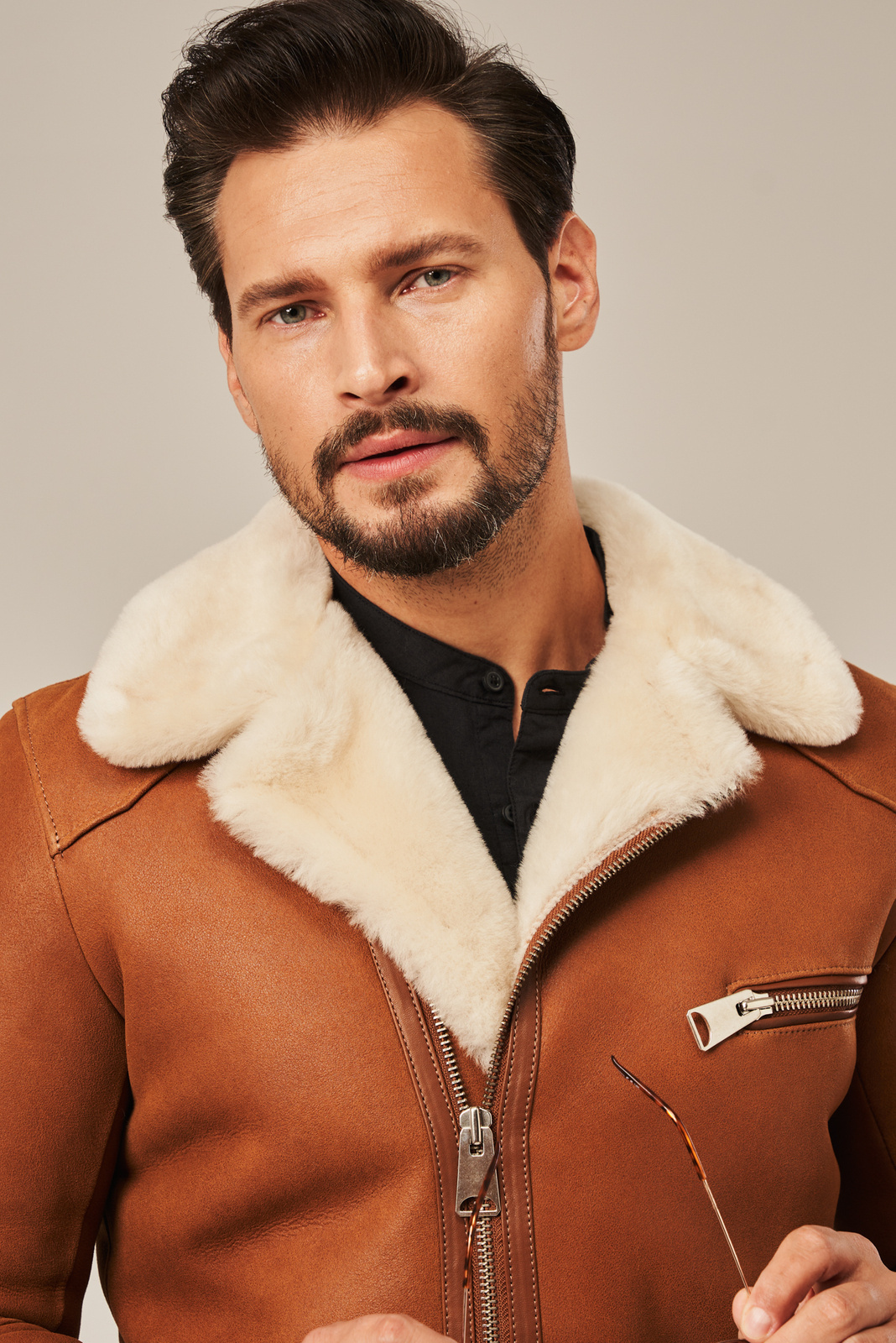 Vyriškas trumpas avikailio paltas