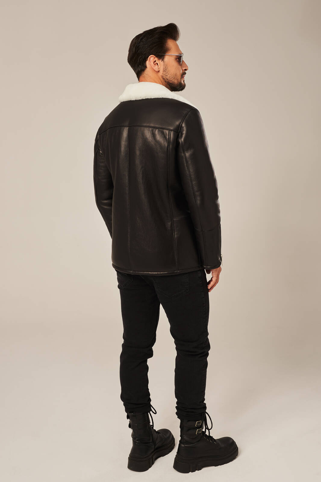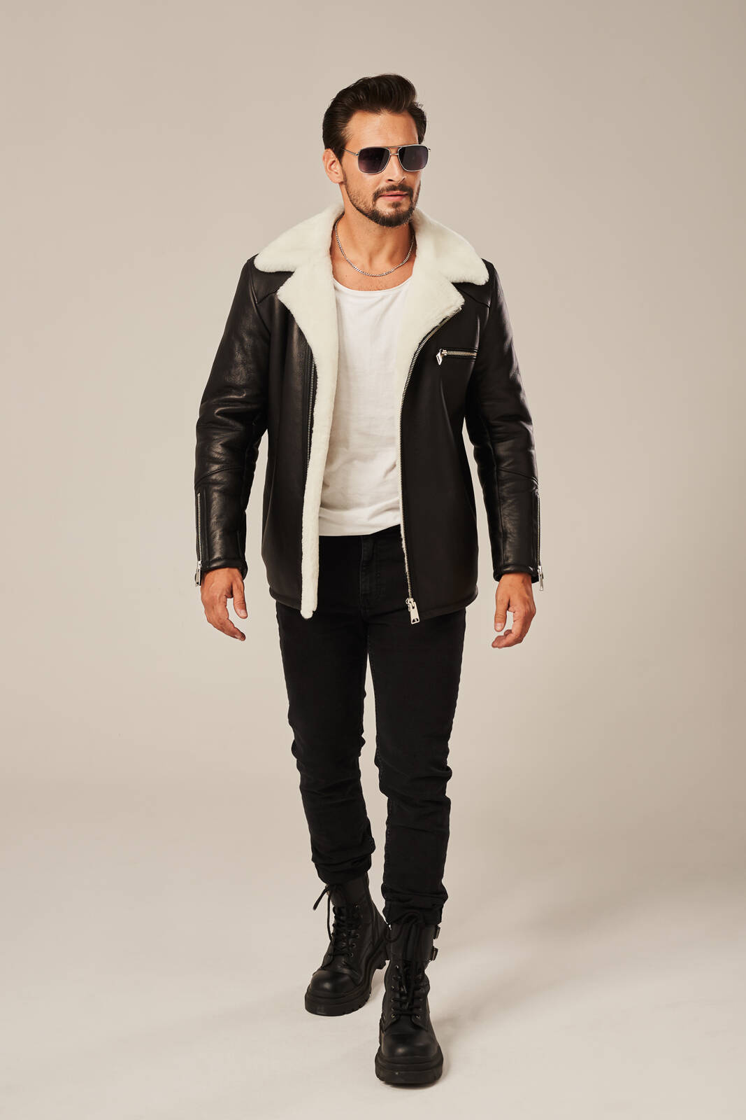 Vyriška žieminė striukė iš avikailio – juodos spalvos ramones stiliaus modelis. Aukštos kokybės natūralus avikailio paltas vyrams, pasiūtas iš impregnuotos avies odos su šviesiu kailiu. Vidinė pusė iš minkšto ir kvėpuojančio avikailio kailio užtikrina maksimalų komfortą ir šilumą net šalčiausiomis žiemos dienomis. Tai avikailio striukė vyrams su šiek tiek šonu paslinktu užtrauktuku – išskirtinis ramones stiliaus modelis, kuris puikiai išryškina šiuolaikinį miesto įvaizdį. Striukė turi tris užsegamas kišenes ir aukštą apykaklę, kurią galima užsegti iki pat viršaus – ideali apsauga nuo vėjo ir šalčio. Šis modelis puikiai dera tiek prie kasdienio stiliaus – megztinio ir džinsų, tiek prie elegantiškesnių derinių, pavyzdžiui, marškinių ir medvilninių kelnių. Tiems, kurie domisi kokybiškais, ilgaamžiais ir stilingais avikailio paltais vyrams, ši žieminė striukė yra puikus pasirinkimas. Tai vienas populiariausių modelių kategorijoje avikailio paltai , tinkantis tiek kasdieniam dėvėjimui, tiek formalesnėms progoms.