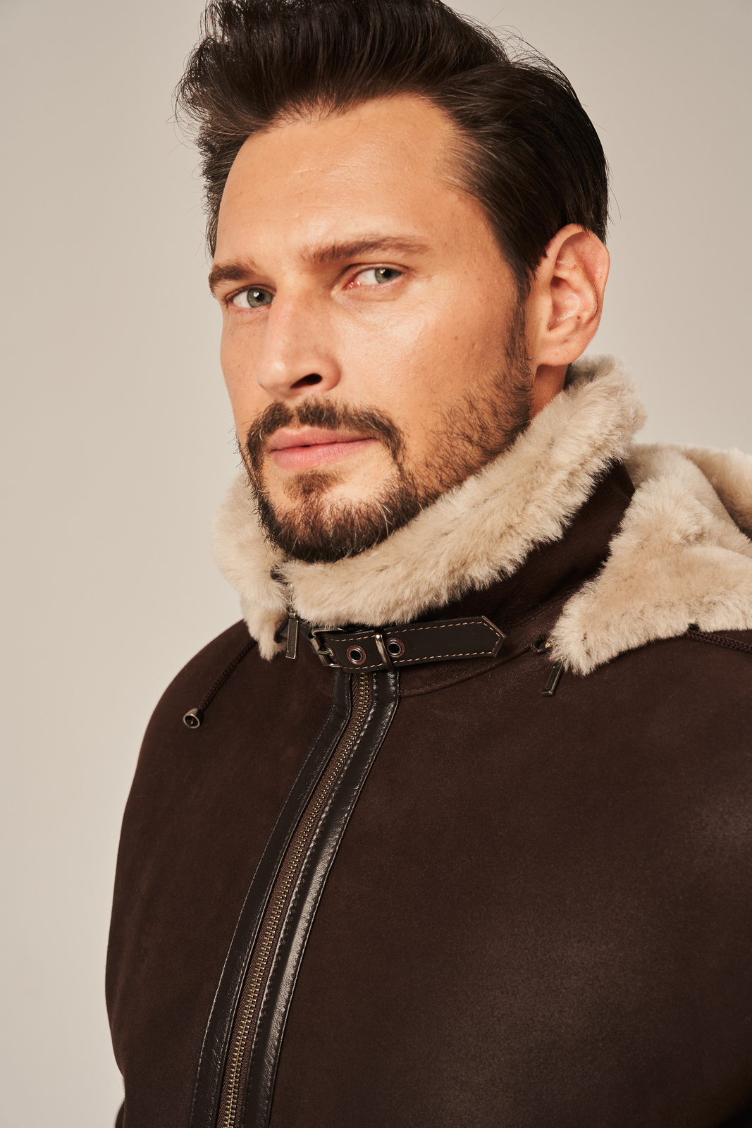 Vyriškas natūralus avikailio paltas su gobtuvu – tamsiai rudos spalvos su šviesiu kailiu. Šis vyriškas žieminis avikailio paltas pagamintas iš natūralios, lengvos ir minkštos avikailio odos, užtikrinančios šilumą ir komfortą net šalčiausiomis dienomis. Paltas yra su tikru avių kailiu viduje, kuris garantuoja ne tik šilumą, bet ir gerą orui laidumą bei patogumą. Natūralus avikailio paltas turi praktišką užtrauktuką, dvi užsegamas kišenes bei apykaklę, kurią galima užsegti prie pat kaklo, saugant nuo vėjo. Apačioje esantis diržas leidžia reguliuoti pločio pritaikymą pagal figūrą, o nuimamas gobtuvas suteikia galimybę keisti stilių ir komfortą pagal oro sąlygas. Rankovių ilgis taip pat šiek tiek reguliuojamas. Šis vyriškas avikailio paltas su gobtuvu yra puikus pasirinkimas kasdieniam nešiojimui žiemą, ypač patogus automobiliu važiuojant ar laisvalaikiui.