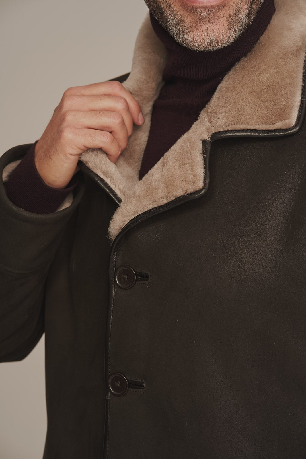 Elegantiškas vyriškas žieminis paltas – rudos spalvos, natūralios avikailio odos, lengvas ir šiltas, matinio paviršiaus. Atraskite tikrą elegantišką vyrišką žieminį paltą, pagamintą iš natūralios, lengvos ir šiltos avikailio odos su matinio paviršiaus apdaila. Šis rudos spalvos paltas derina klasikinį stilių su aukščiausiu komfortu ir apsauga nuo šalčio. Paltas išsiskiria natūralios odos lamavimais ant apykaklės, kišenių ir sagų, suteikiančiais išskirtinį rafinuotumą ir ilgaamžiškumą. Jis puikiai tinka dėvėti ant švarko, todėl yra nepriekaištingas pasirinkimas vyrams, vertinantiems šilumą ir eleganciją vienu metu. Šis avikailio paltas vyrams – tai tobula investicija į stilingą, patvarų ir funkcionalų drabužį, kuris užtikrins komfortą net ir pačiomis šalčiausiomis dienomis.
