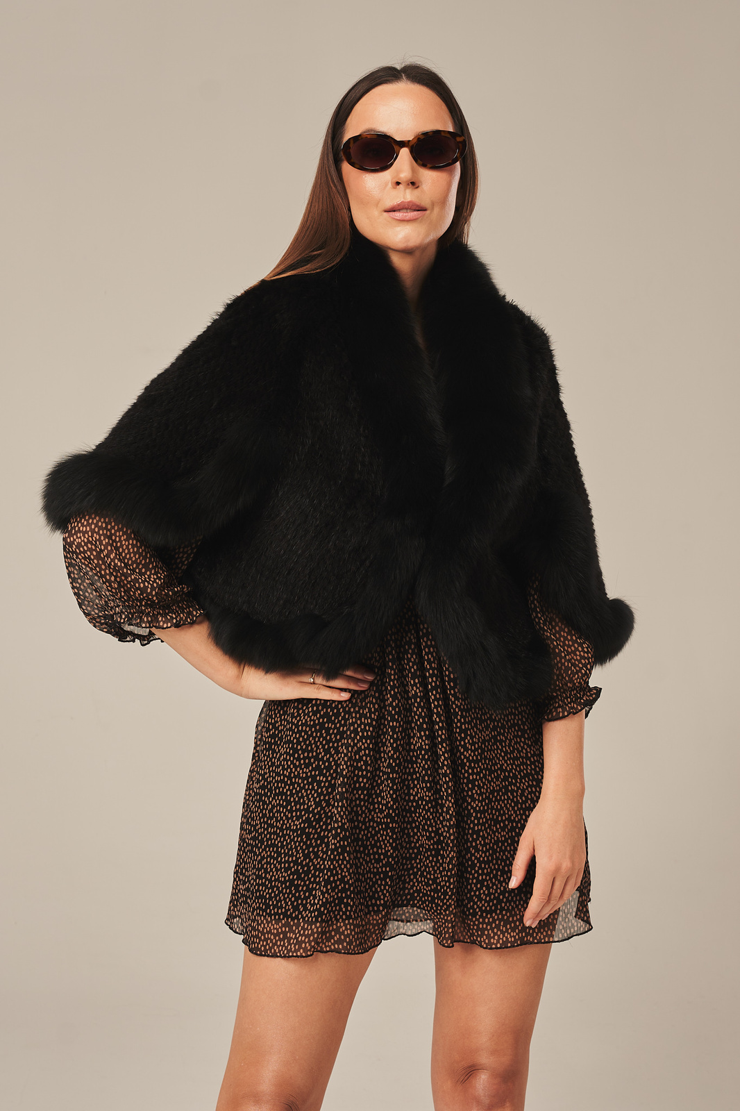 Juodas trumpas bolero iš audinės kailio su lapės apdaila