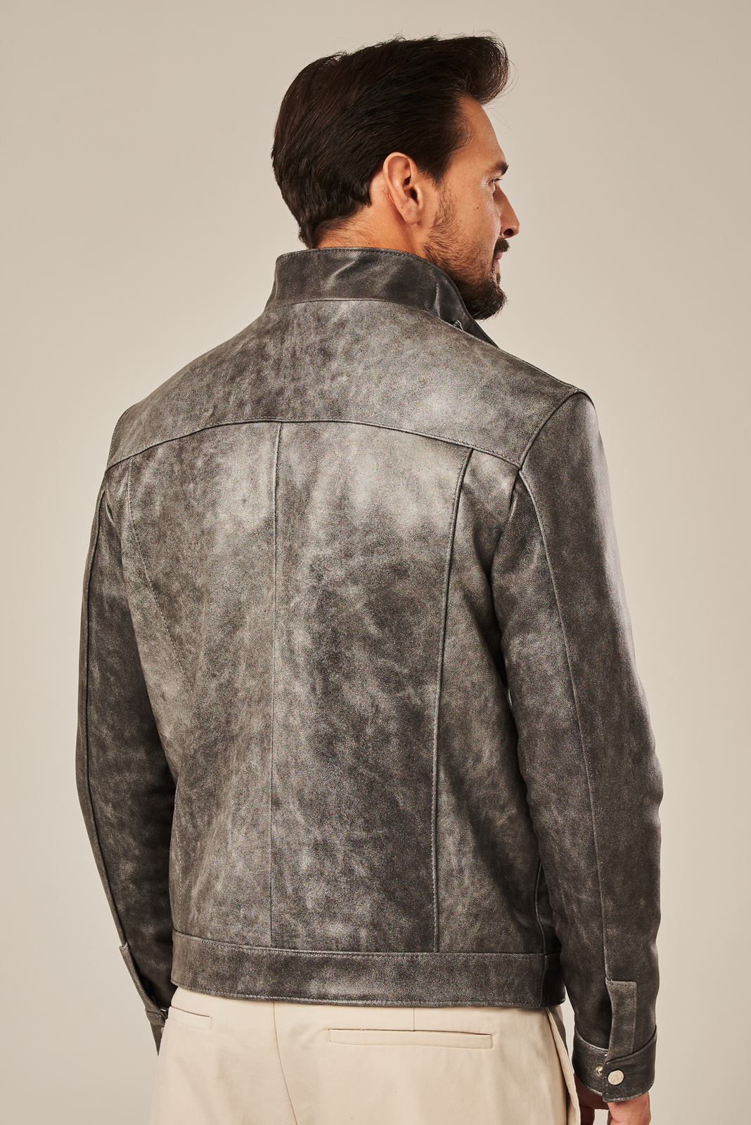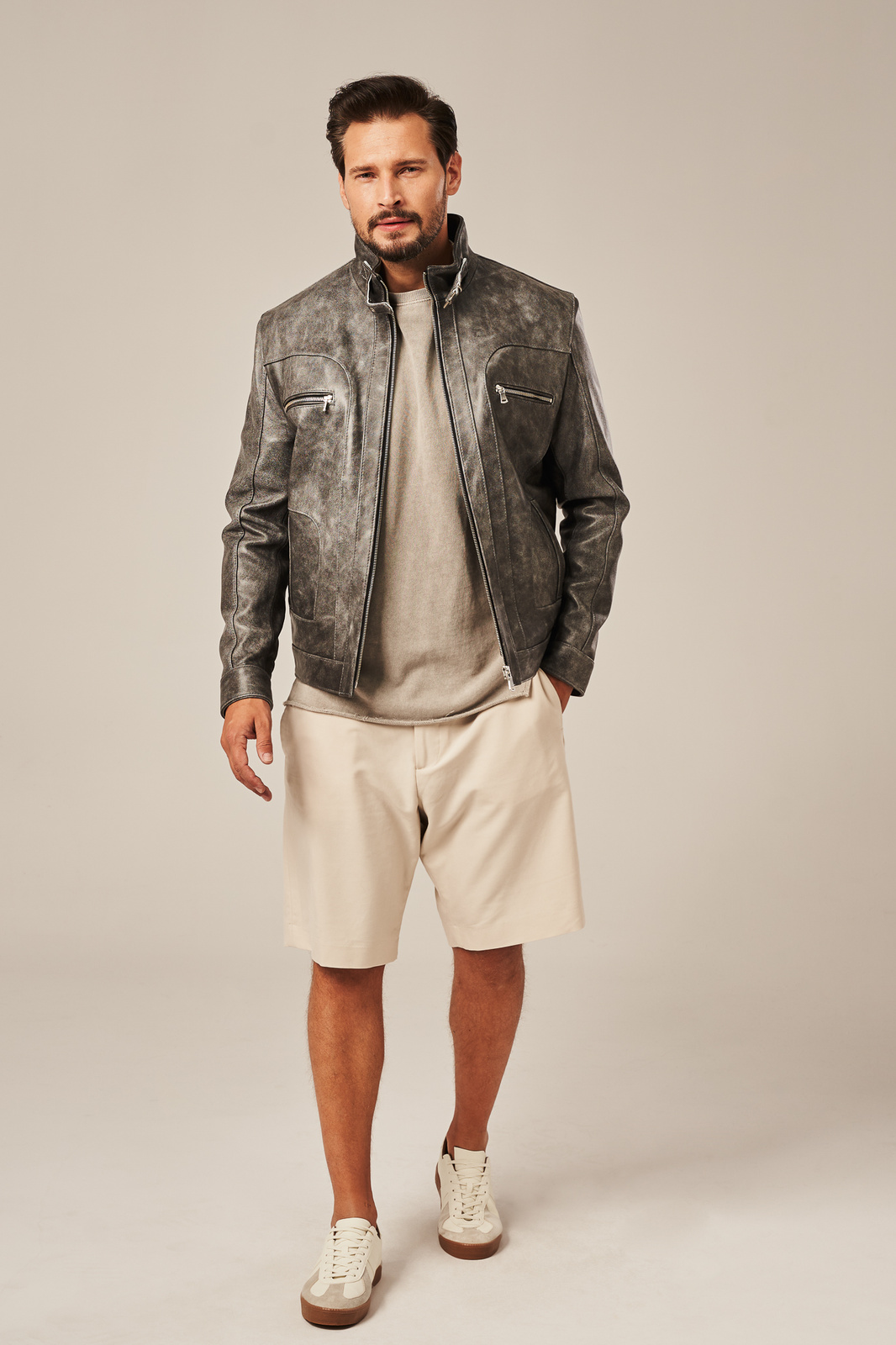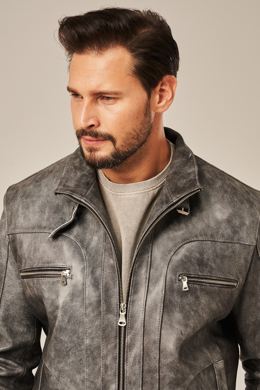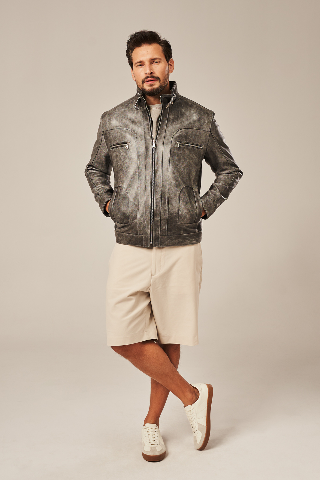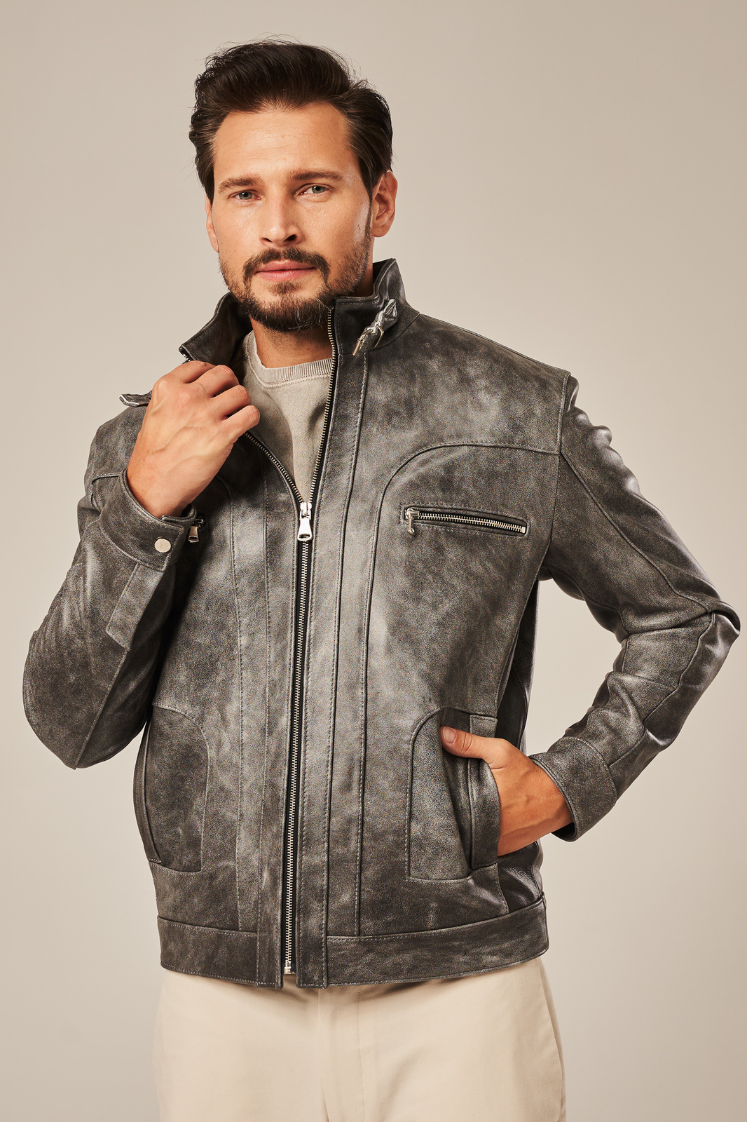 Vyriška pilka odinė striukė – miesto stilius su laisvalaikio dvasia. Vyriška odinė striukė pilka, pasiūta iš storos ir aukštos kokybės natūralios avies odos, išsiskiria tvirtumu, komfortu ir subtilia prabanga. Tai plona vyriška striukė, kuri nėra pašiltinta, todėl idealiai tinka pavasario ir rudens sezonams. Modelis turi užtrauktuku užsegamą priekį, dvi įleistas kišenes bei dvi papildomas kišenes su užtrauktukais, kurios suteikia tiek funkcionalumo, tiek šiuolaikiško įvaizdžio. Viduje – aukštos kokybės pamušalas, kuris užtikrina komfortą ir kvėpuojančias savybes net aktyvaus dėvėjimo metu. Stovintis kaklas subtiliai pabrėžia motociklininko stiliaus įtaką ir suteikia lengvą roko akcentą. Ši vyriška pilka odinė striukė puikiai dera su kasdieniais deriniais – džinsais, marškinėliais ar sportinio stiliaus apranga. Tai praktiškas pasirinkimas vyrams, ieškantiems universalios, bet išskirtinės striukės, kuri tinka ir miesto gatvėms, ir kelionėms motociklu. Vyriška striukė iš natūralios avies odos – tai drabužis, kuris jungia patogumą, stilių ir kokybę viename kasdieniame sprendime.