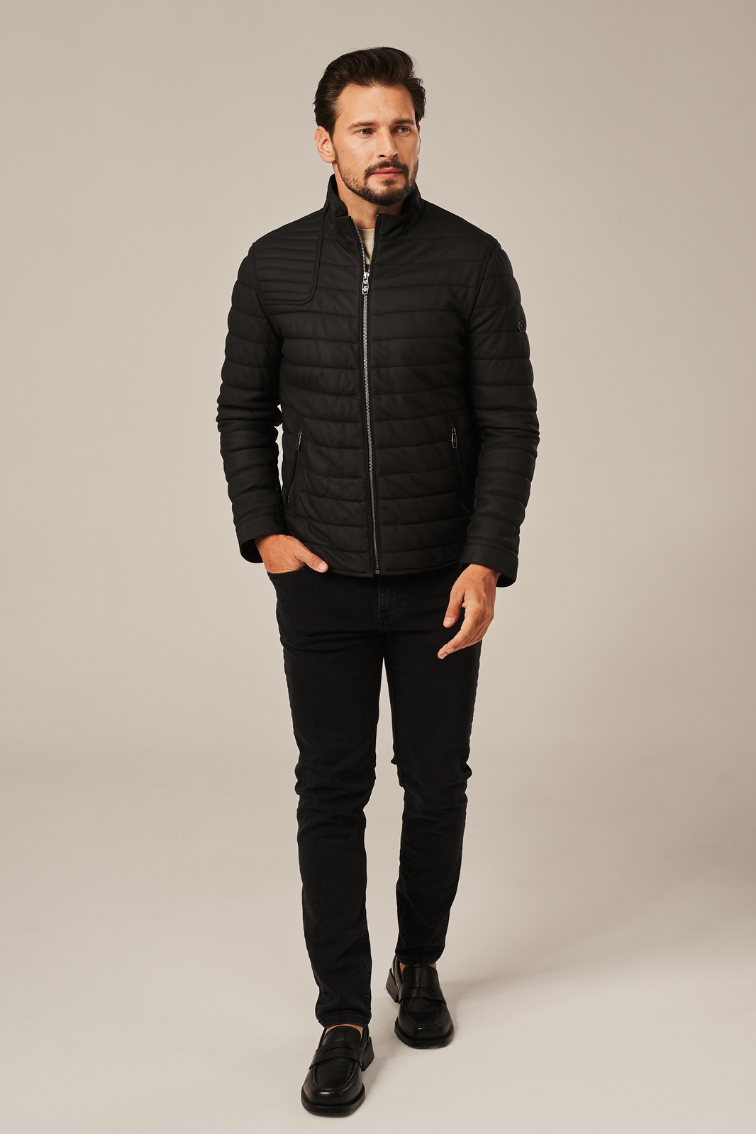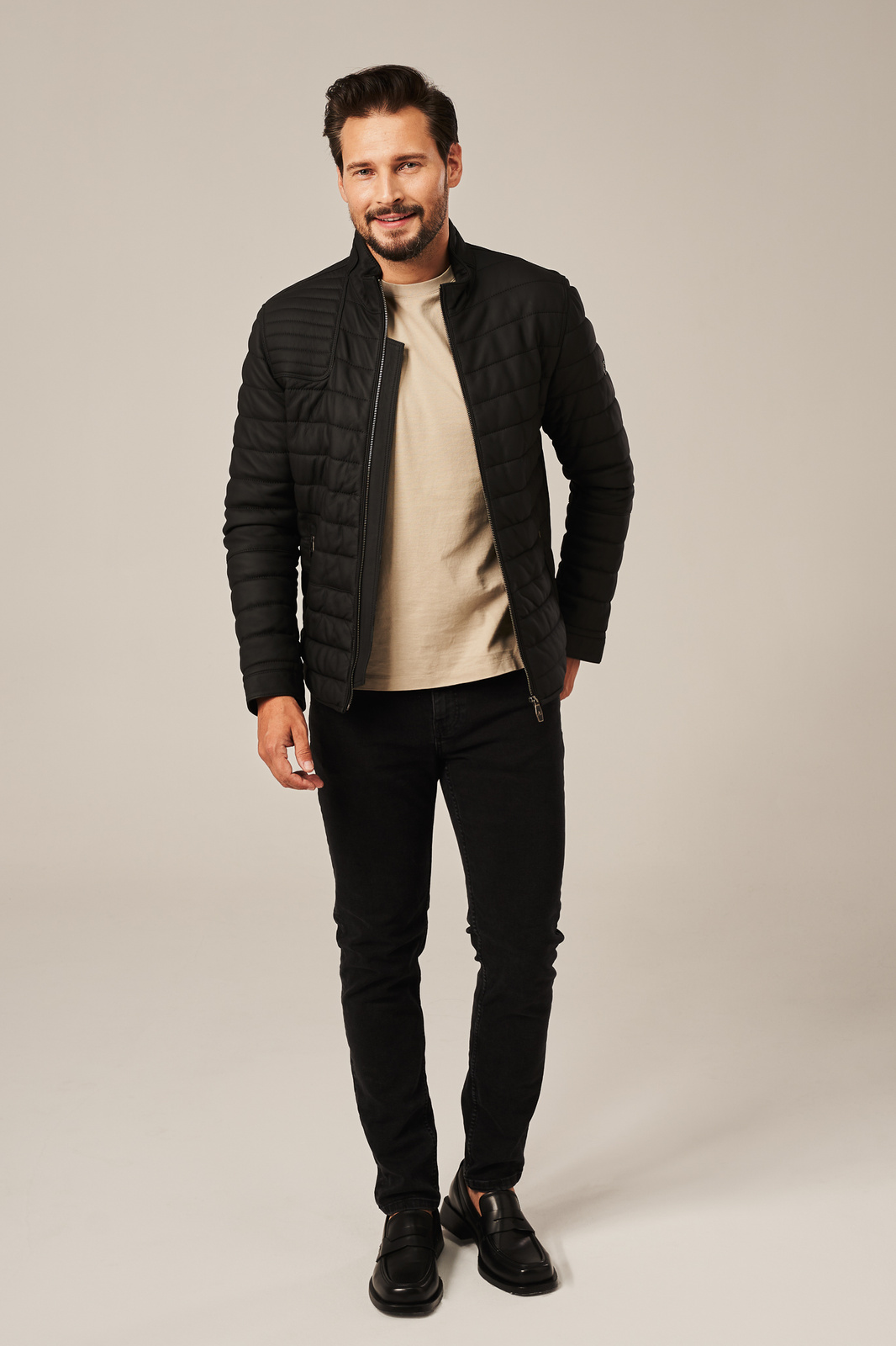 Vyriška dygsniuota odinė striukė – juoda klasika pereinamajam sezonui. Vyriška juoda odinė striukė, pasiūta iš aukščiausios kokybės natūralios avies odos, išsiskiria matiniu paviršiumi, lengvumu ir tvirtumu. Minkšta oda ne tik patogi, bet ir ilgaamžė, todėl tai patikimas pasirinkimas kasdieniam dėvėjimui. Modelis turi šiek tiek pašiltintą pamušalą, todėl puikiai tinka kaip pavasarinė arba rudeninė odinė striukė vyrams. Vidinė dalis išklota kokybišku, kvėpuojančiu audiniu, kuris užtikrina komfortą vėsesnėmis dienomis. Striukė užsegama metaliniu užtrauktuku, o dvi vidinės bei dvi išorinės kišenės suteikia praktiškumo ir leidžia patogiai laikyti asmeninius daiktus. Vyriška dygsniuota odinė striukė pasižymi tiesiu, universaliu kirpimu, kuris derinamas su subtiliu, bet išraiškingu dygsniuotu raštu. Toks derinys suteikia striukei vizualinio įdomumo, išlaikant elegantišką ir tvarkingą išvaizdą. Ši vyriška striukė iš natūralios avies odos puikiai tinka tiek prie laisvalaikio, tiek prie labiau formalių derinių – nuo džinsų iki klasikinių kelnių. Tai funkcionali ir stilinga striukė vyrams, ieškantiems kokybiško drabužio, kuris tiktų įvairioms progoms ir skirtingiems sezonams.