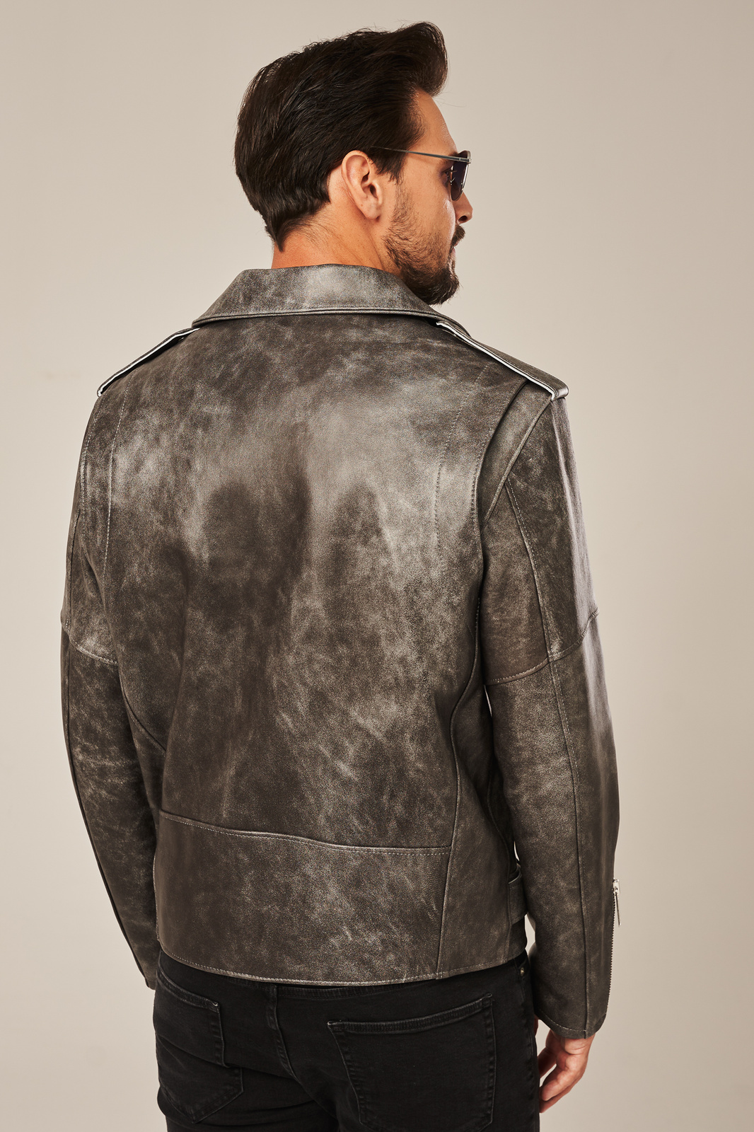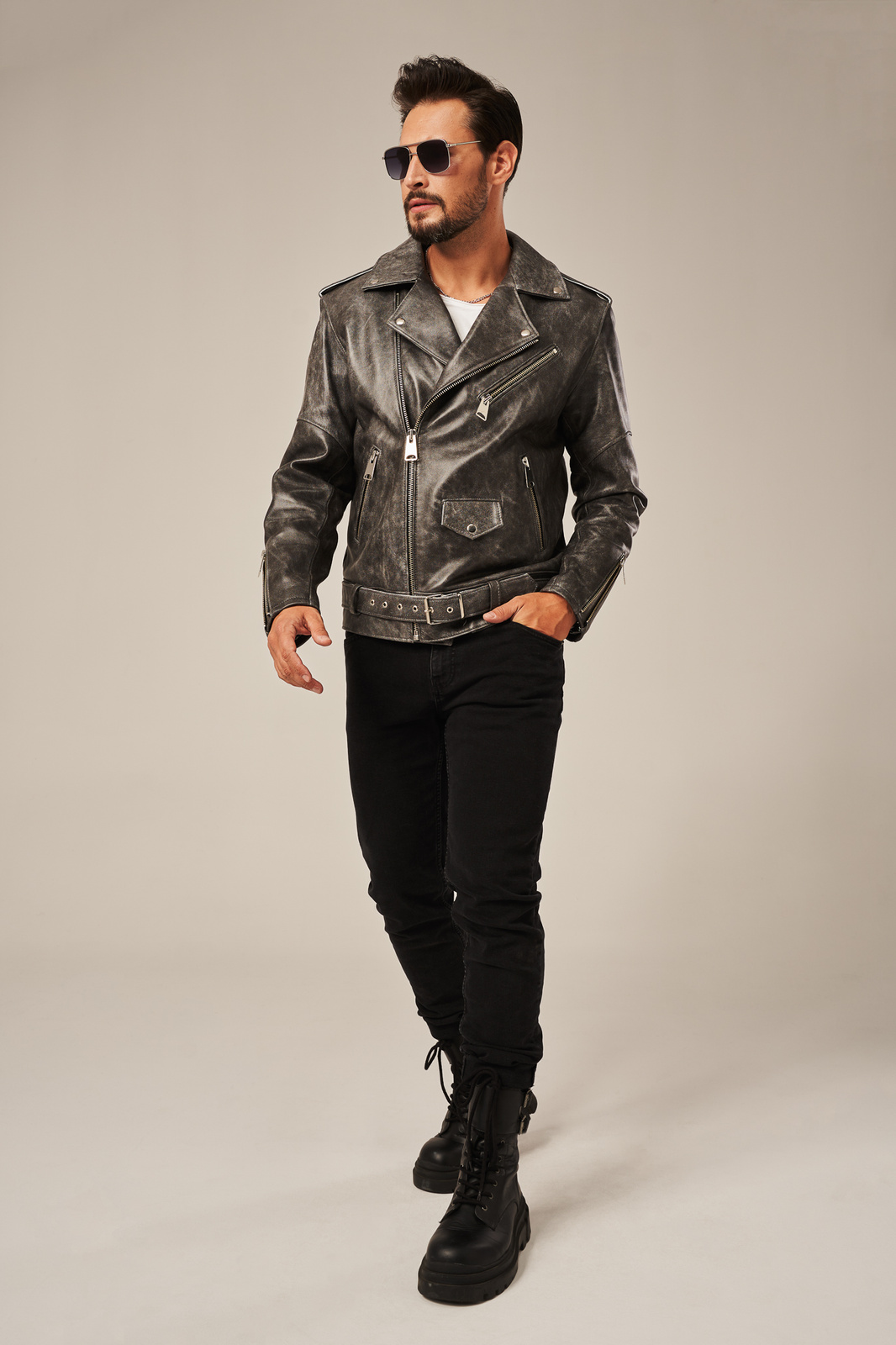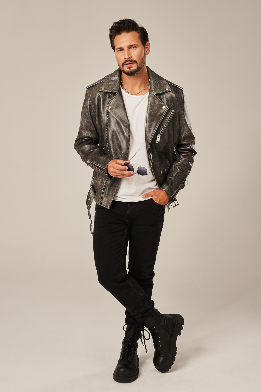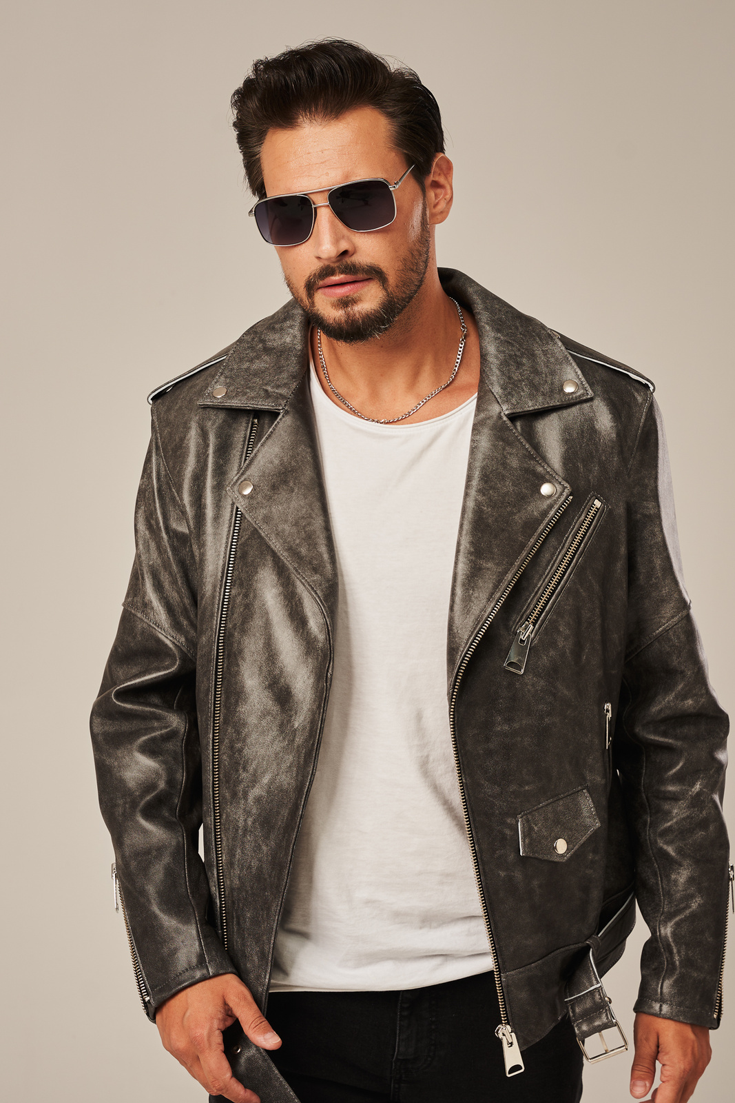 Vyriška pilka odinė striukė – miesto stilius su lengvu roko prieskoniu. Vyriška odinė striukė pilka, pasiūta iš natūralios, storos ir minkštos avių odos, pasižymi aukšta kokybe bei komfortu dėvint. Tai klasikinio motociklininko stiliaus modelis, kuris derina funkcionalumą su miesto estetika. Matinis paviršius ir sodrus pilkas atspalvis suteikia universalumo bei šiuolaikiškumo. Striukė yra nepašiltinta, todėl idealiai tinka pereinamojo sezono orams – pavasariui ar rudeniui. Vidus išklotas kokybišku pamušalu, kuris leidžia odai kvėpuoti ir užtikrina patogumą visą dieną. Užsegama metaliniu užtrauktuku – praktiškas ir stilingas sprendimas, būdingas ramoneso tipo odinėms striukėms vyrams. Modelis turi dvi įleistas kišenes bei dvi papildomas kišenes su užtrauktukais – tai leidžia patogiai nešiotis svarbiausius daiktus. Aukštas stovintis kaklas sustiprina charakterį ir suteikia nedidelį roko įvaizdį. Ši vyriška odinė striukė motociklininko stiliaus puikiai tinka kasdieniams deriniams – su džinsais, marškinėliais ar net minimalistiniu džemperiu. Tvirta, stilinga ir funkcionali – ši vyriška avių odos striukė sujungia klasikinį siluetą su moderniomis detalėmis, todėl yra tinkamas pasirinkimas ne tik miesto gatvėms, bet ir kelionėms motociklu.