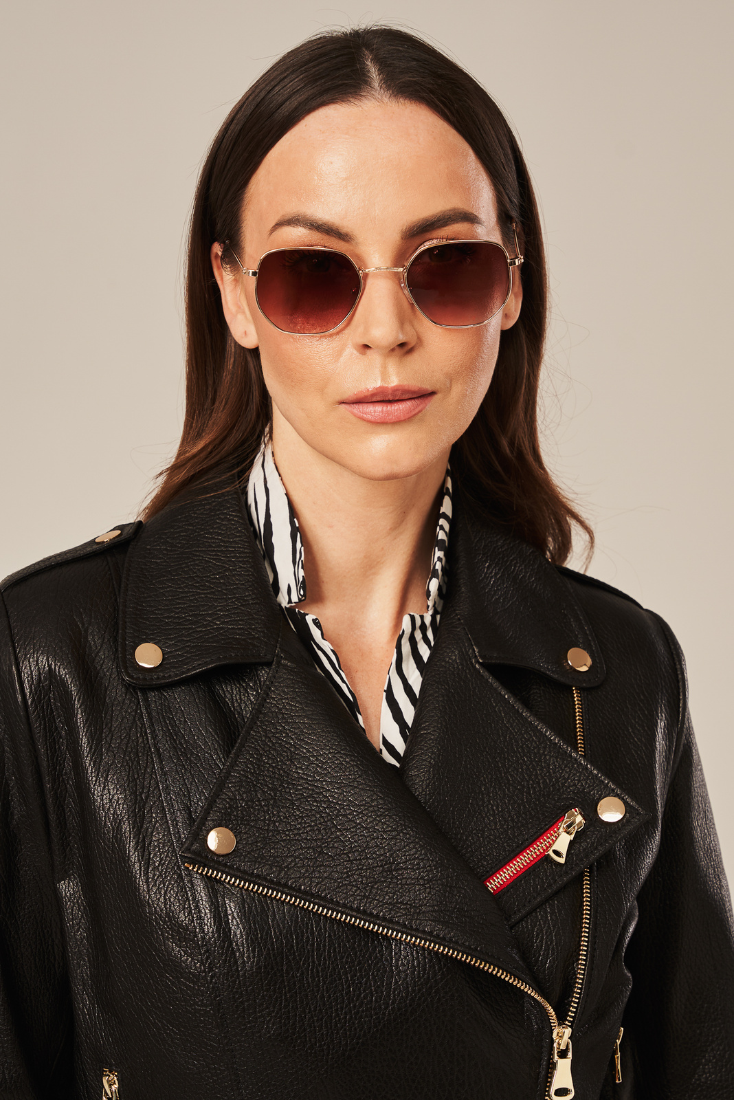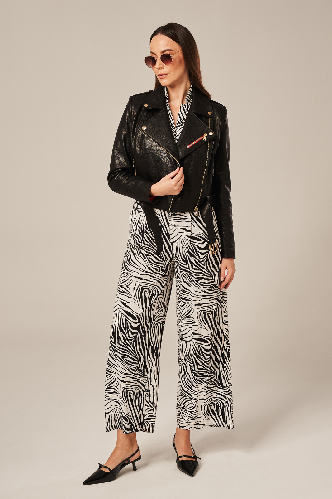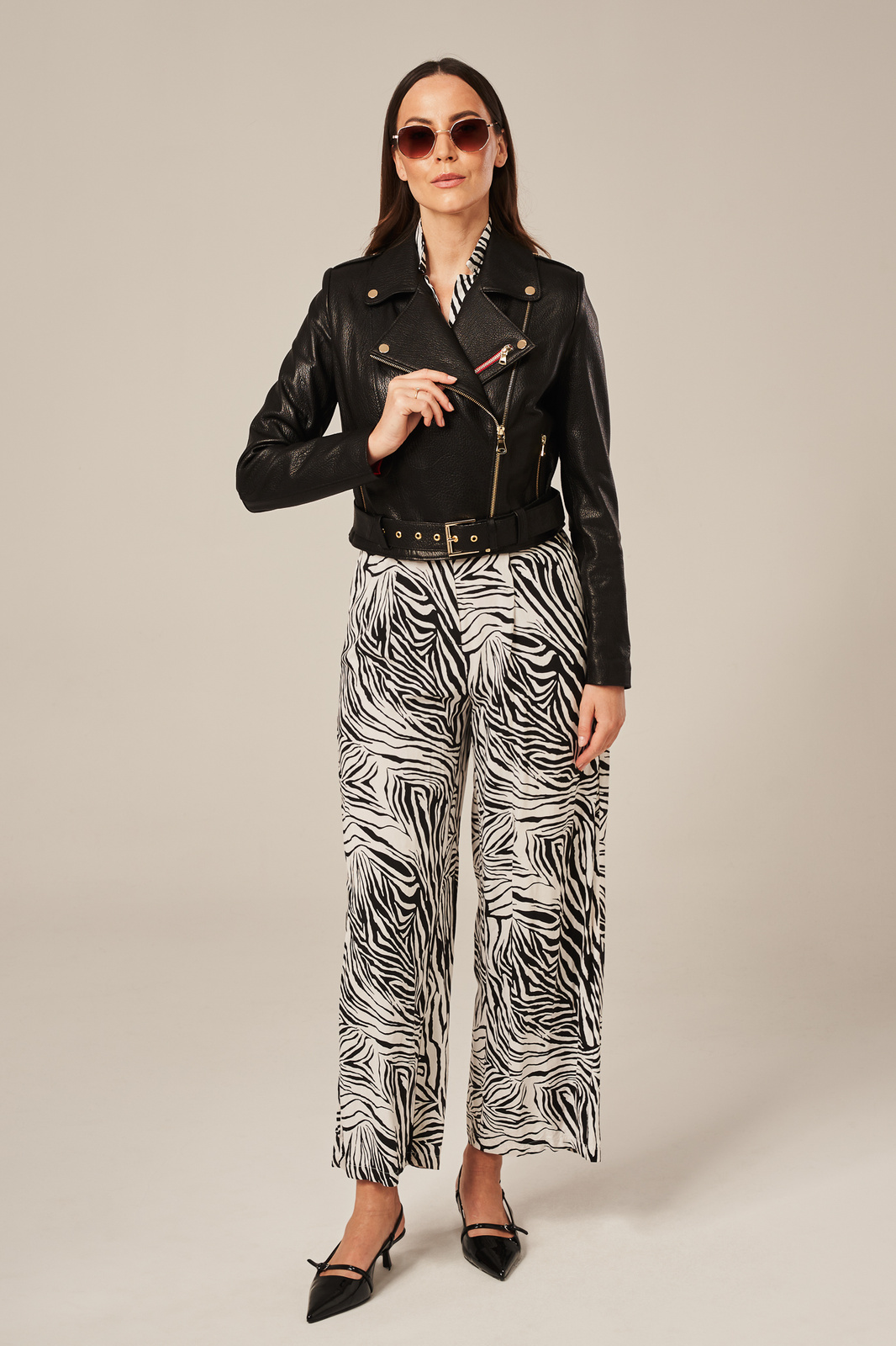 Trumpa juoda moteriška odinė striukė – lengvumas, stilius ir kokybė. Ši trumpa moteriška odinė striukė pagaminta iš natūralios, lengvos ir minkštos avikailio odos, kuri puikiai suderina lengvumą ir patvarumą. Striukė užsegama užtrauktuku, kuris šiek tiek paslinktas į šoną, suteikdamas unikalų ir modernų stilių. Odinė ramoneska moterims turi dvi užsegamas kišenes bei diržą apačioje, leidžiantį reguliuoti striukės plotį pagal figūrą. Dekoratyviniai senovinio aukso spalvos kniedės ir raudona detalė priekyje suteikia subtilų, bet išskirtinį akcentą. Ši stilinga odinė ramoneska moterims puikiai dera tiek su medvilniniu kombinezonu, tiek su suknele, o taip pat atrodo puikiai derinama su megztiniu, mom tipo džinsais ir sportiniais bateliais.
