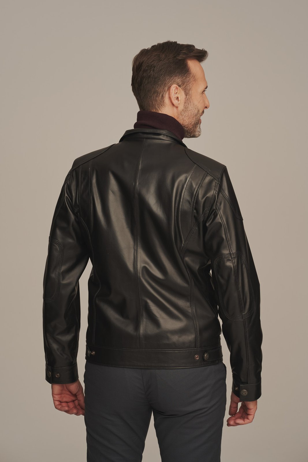 Vyriška juoda odinė striukė, pagaminta iš aukštos kokybės natūralios avies odos, yra būtina kiekvieno vyro garderobo dalis. Ši vyriška odinė striukė pasižymi praktiška iki klubų ilgio forma, tinkama dėvėti įvairiais metų laikais. Striukė užsegama patvariu užtrauktuku, turi keturias išorines kišenes ir dvi užsegamas vidines kišenes, suteikiančias pakankamai vietos daiktams laikyti. Kokybiška pamušalinė medžiaga užtikrina šilumą ir ilgaamžiškumą. Svorio reguliavimo funkciją suteikia dirželiai klubų srityje, leidžiantys tiksliai pritaikyti striukės plotį. Delikatus stovimas apykaklės modelis suteikia šiuolaikišką ir elegantišką įvaizdį šiai vyriškai odinei striukei. Ši vyriška natūralios odos juoda striukė puikiai tinka vyrams, ieškantiems patvarios, patogios ir stilingos odinės striukės, tinkamos tiek miesto gatvėms, tiek laisvalaikiui lauke.