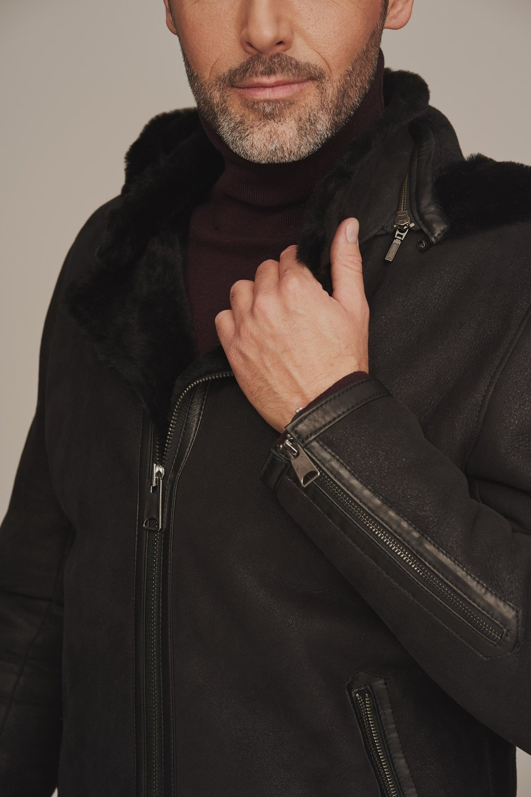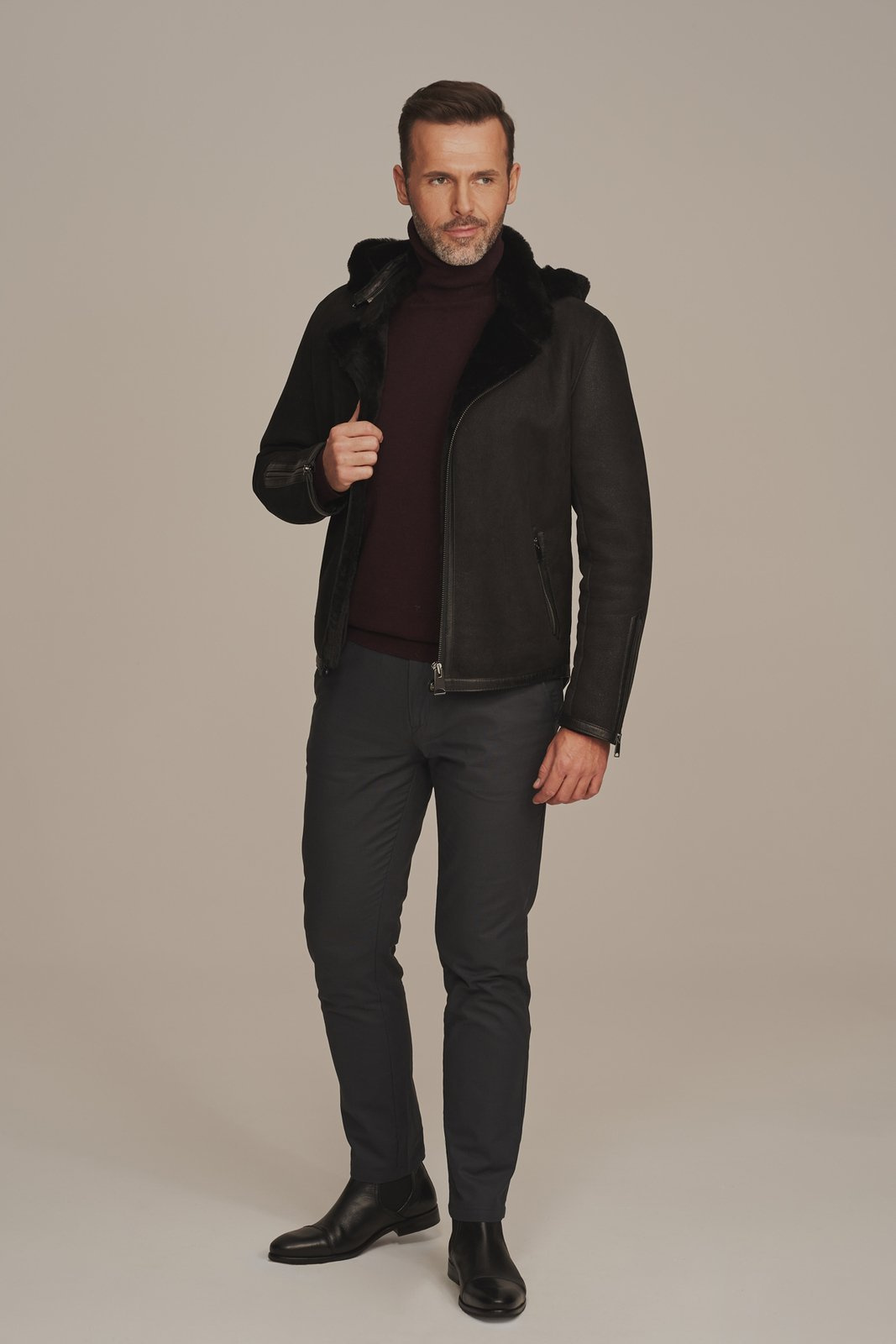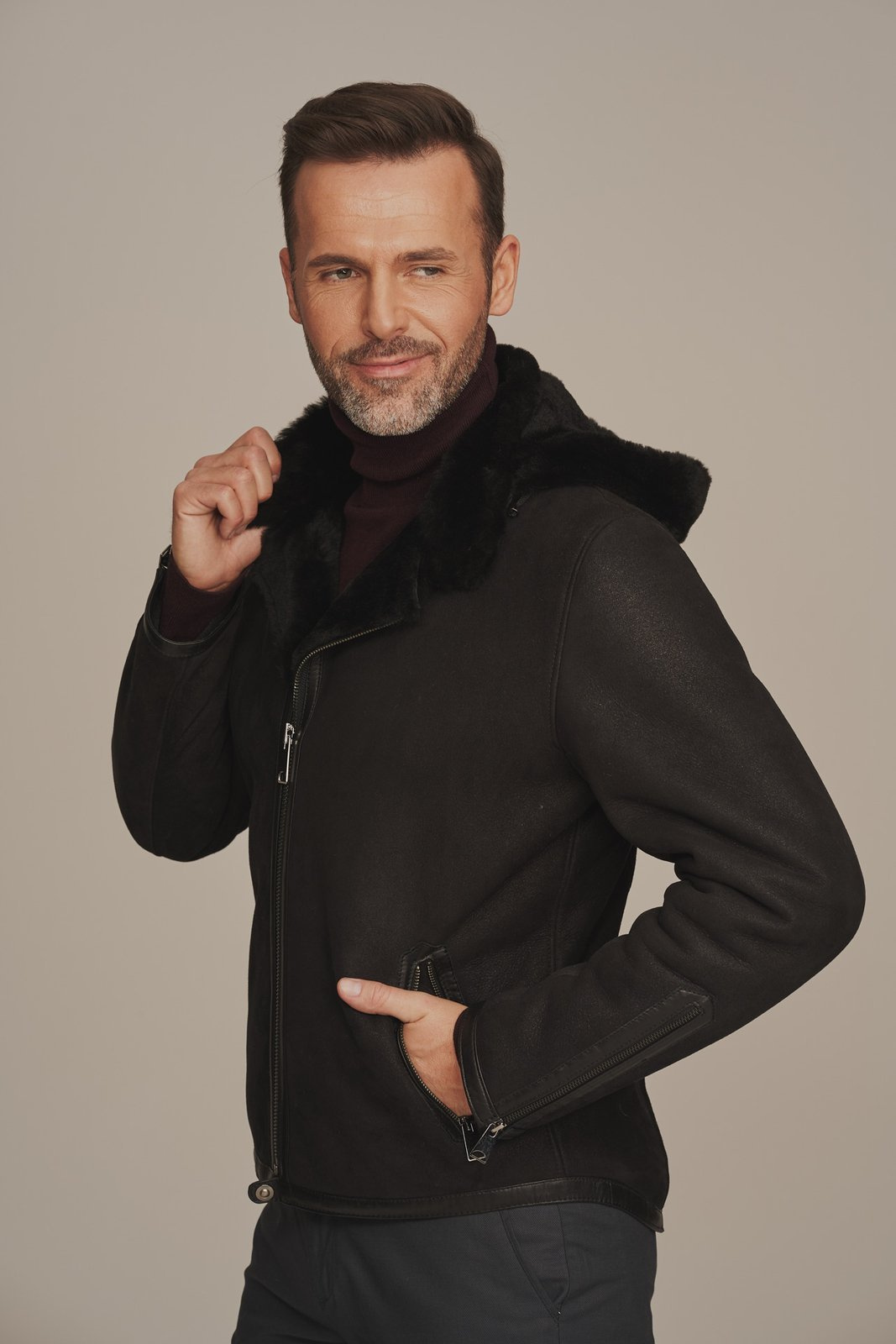 Stilingas trumpas vyriškas avikailio paltas žiemai – natūralios odos šiluma ir komfortas. Šis stilingas trumpas vyriškas avikailio paltas žiemai pagamintas iš švelnios, natūralios ėriuko odos, užtikrinančios lengvumą ir išskirtinę šilumą. Tai aukštos kokybės vyriška žieminė striukė iš natūralios avikailio odos, kuri puikiai tinka šaltam sezonui. Striukė pasižymi praktiška stovima apykakle bei užtrauktukais kišenėse ir rankogaliuose, o užsegimas su šonu kiek paslinktu užtrauktuku suteikia modernų ir unikalų stilių. Šis trumpas vyriškas avikailio paltas yra ne tik patogus, bet ir funkcionalus pasirinkimas vyrams, vertinantiems kokybę ir komfortą. Papildomai striukė turi nuimamą gobtuvą su sportiniu charakteriu – puikus sprendimas vyrams, kurie nemėgsta dėvėti kepurių žiemą. Tai idealus pasirinkimas ieškantiems natūralaus avikailio žieminės striukės vyrams, užtikrinančios šilumą ir stilių. Šis modelis – tai šilti avikailio drabužiai vyrams, kurie ne tik saugo nuo šalčio, bet ir išlaiko eleganciją bei vyrišką charakterį.