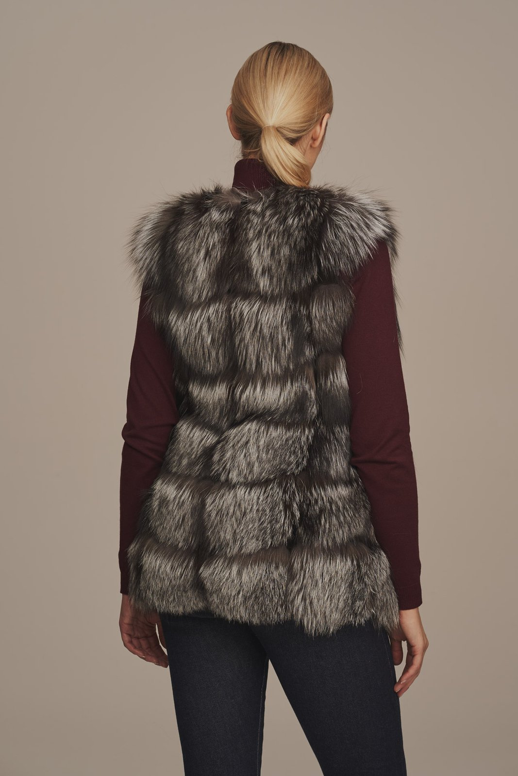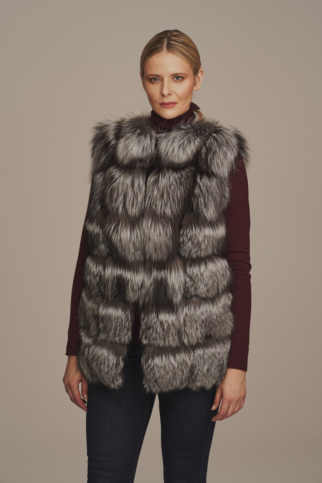 Prabangi sidabrinės lapės kailinė liemenė moterims – natūralus kailis, stilingas dizainas