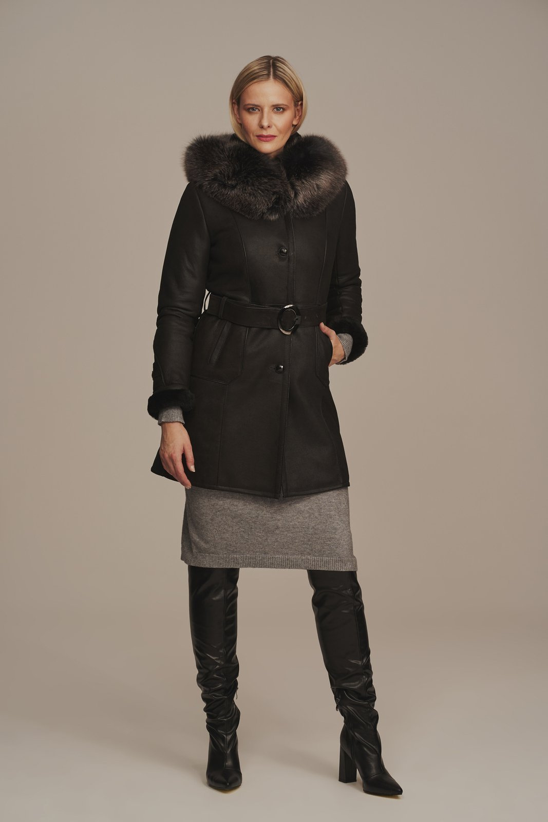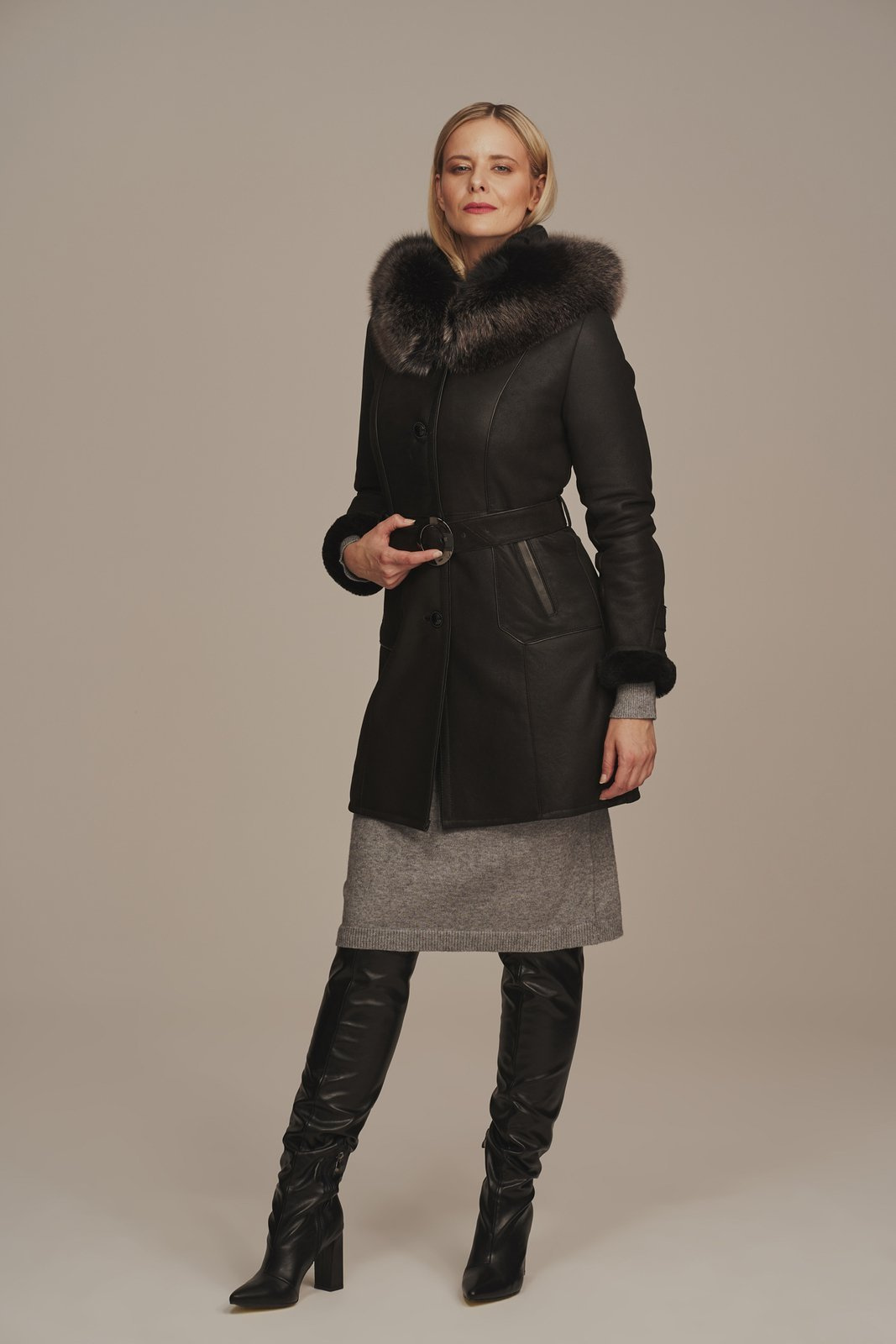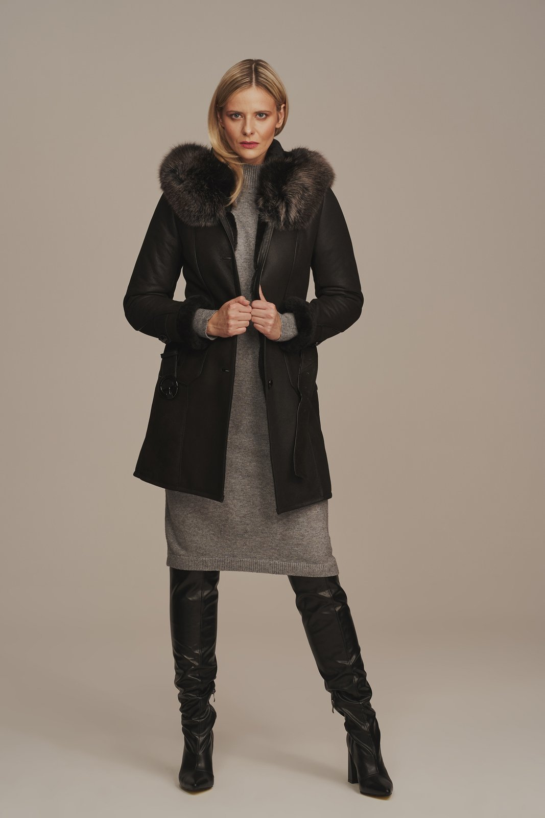 Elegantiški moteriški kailiniai, pagaminti iš natūralios avikailio odos, kuri pasižymi ypatingu švelnumu, lengvumu ir šiluma. Šis juodos spalvos tikras avikailio paltas subtiliai įliemenuotas, su diržu ties liemeniu, kuris išryškina figūrą. Modelio ilgis dengia klubus – tai patogu ir praktiška žiemos sezonui. Paltas užsegamas klasikiniais mygtukais, turi dvi patogias įleistines kišenes. Gobtuvas dekoruotas prabangiu natūraliu lapių kailiu su švelniai pašviesintais galiukais, kuris suteikia išskirtinumo ir papildomos šilumos. Tai puikus pasirinkimas moterims, ieškančioms kokybiško ir stilingo žieminio drabužio. Tikros odos kailiniai su lapių kailiu – tai ne tik šiluma, bet ir ilgalaikė investicija į stilių ir komfortą.